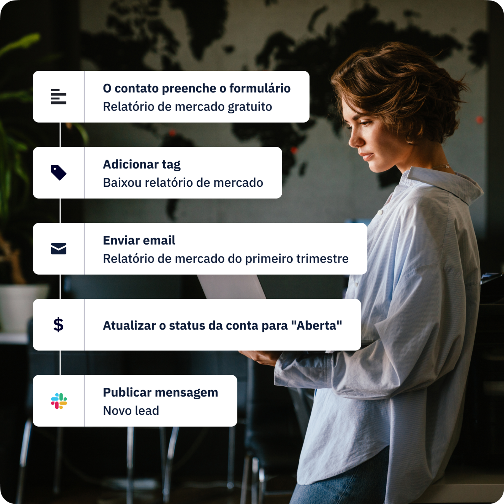 Uma receita de automação é, basicamente, um modelo pronto de automação, criado para simplificar um fluxo de trabalho. Desenvolvemos centenas de receitas para diversos casos de uso a fim de ajudar você a automatizar tarefas comuns e repetitivas em marketing, vendas e atendimento ao cliente.