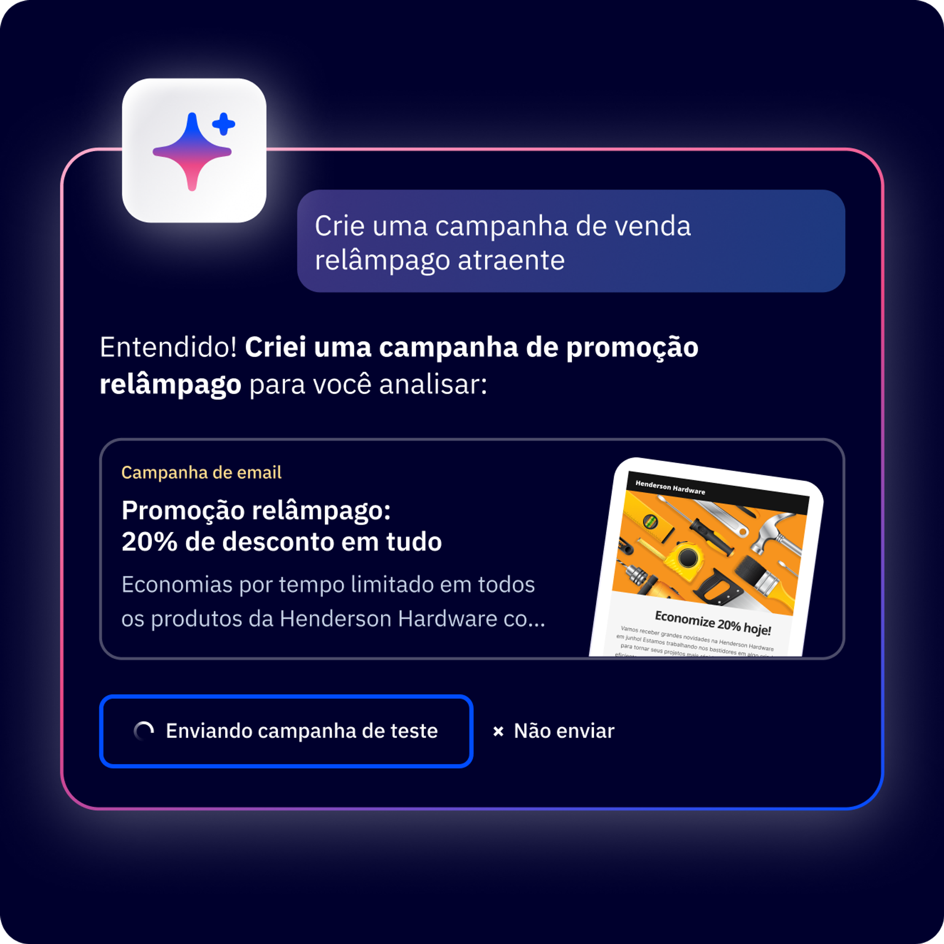 Nossos agentes de IA são desenvolvidos para cuidar do seu marketing de forma autônoma, desde a criação de conteúdo e segmentação até a automação em tempo real e geração de relatórios. Eles são especializados, personalizáveis e estão prontos para dimensionar estratégias que funcionam para todos os canais.