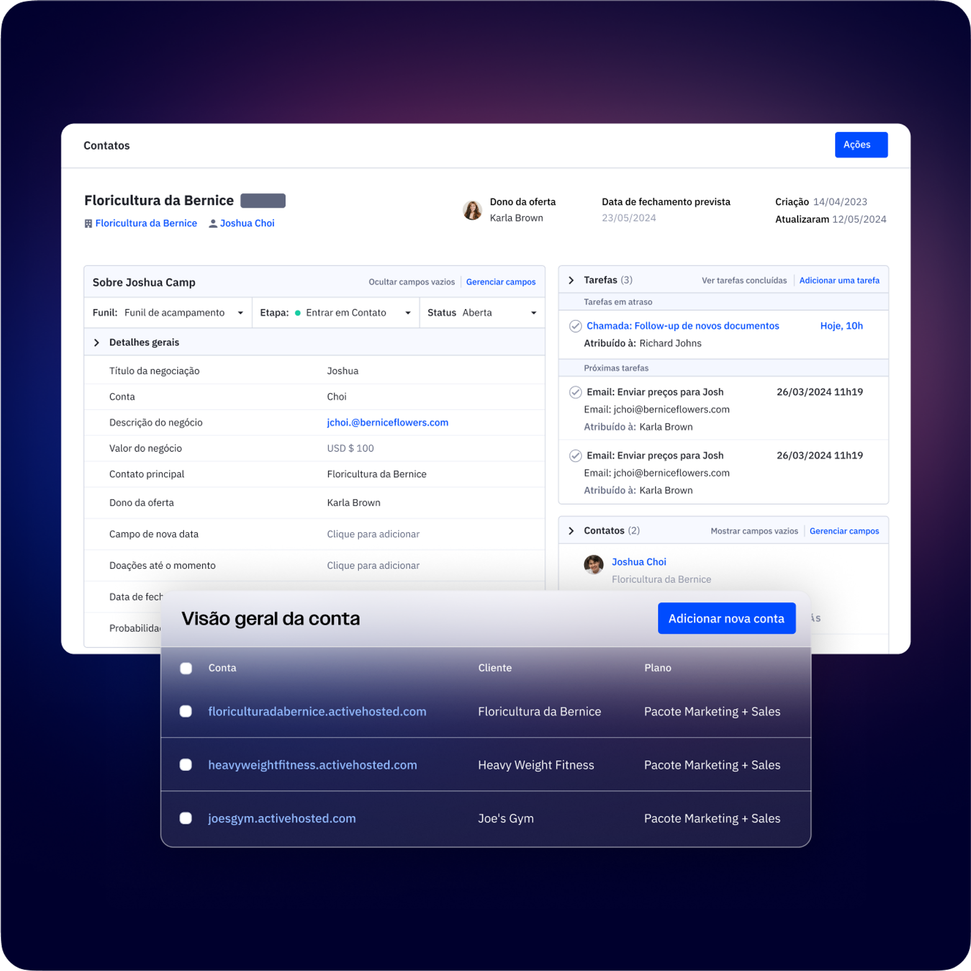 Ao criar jornadas complexas entre canais ou ao lançar sua melhor campanha de email, a ActiveCampaign se adapta às suas metas, ajuda a otimizar de forma inteligente e gera resultados em todas as escalas.
