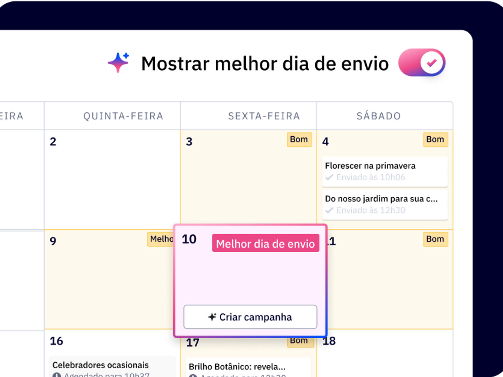 Planeje, agende e otimize campanhas com insights e horários orientados por IA.