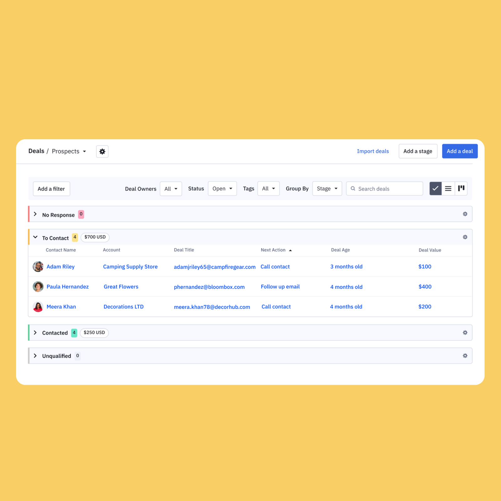 O marketing autônomo da ActiveCampaign ajuda você a encontrar automaticamente seus melhores clientes em potencial, prever quais negócios serão fechados e fornecer campanhas personalizadas em qualquer idioma. Tudo com suporte do CRM da ActiveCampaign que rastreia cada interação.
