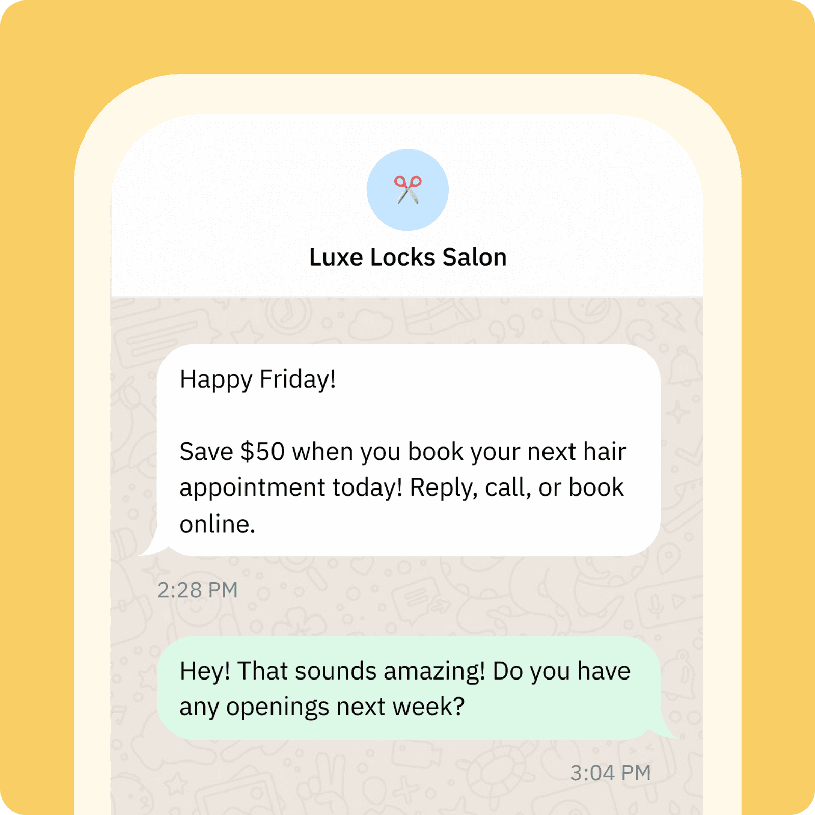 Aproveite ao máximo o SMS com campanhas que se adaptam às ações do seu público. Crie e envie follow-ups personalizados que engajam, convertem e fidelizam.