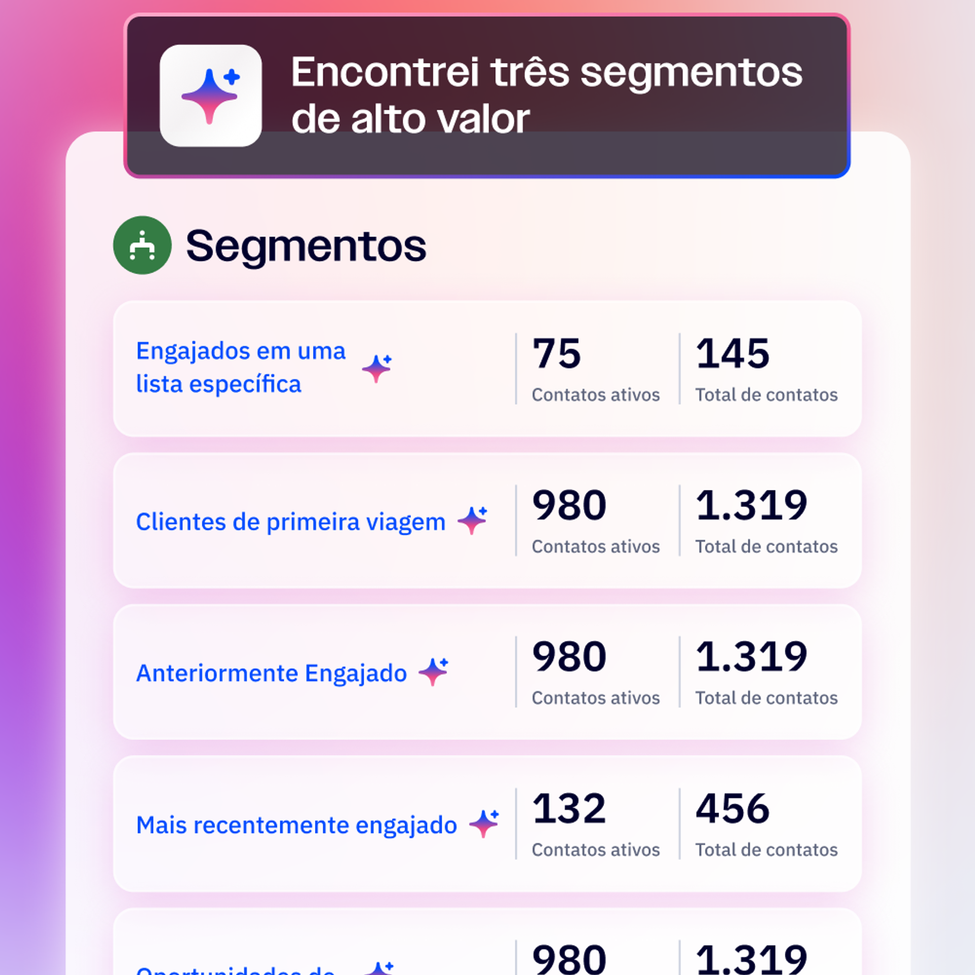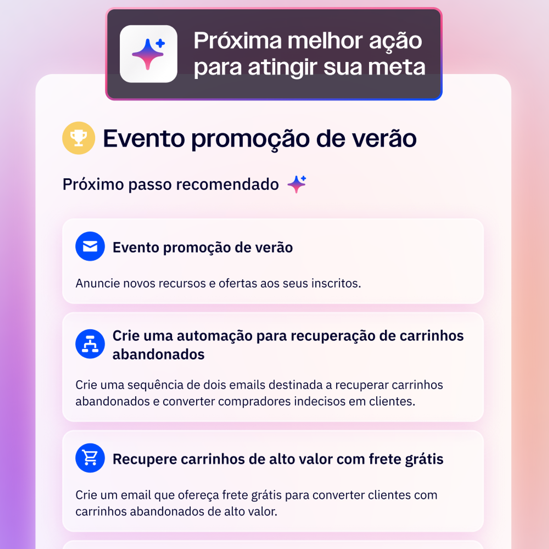 A automação de marketing executa o que você cria. O marketing autônomo cria o que você precisa. Defina seus objetivos e veja o Active Intelligence criar estratégias de marketing inovadoras para você.