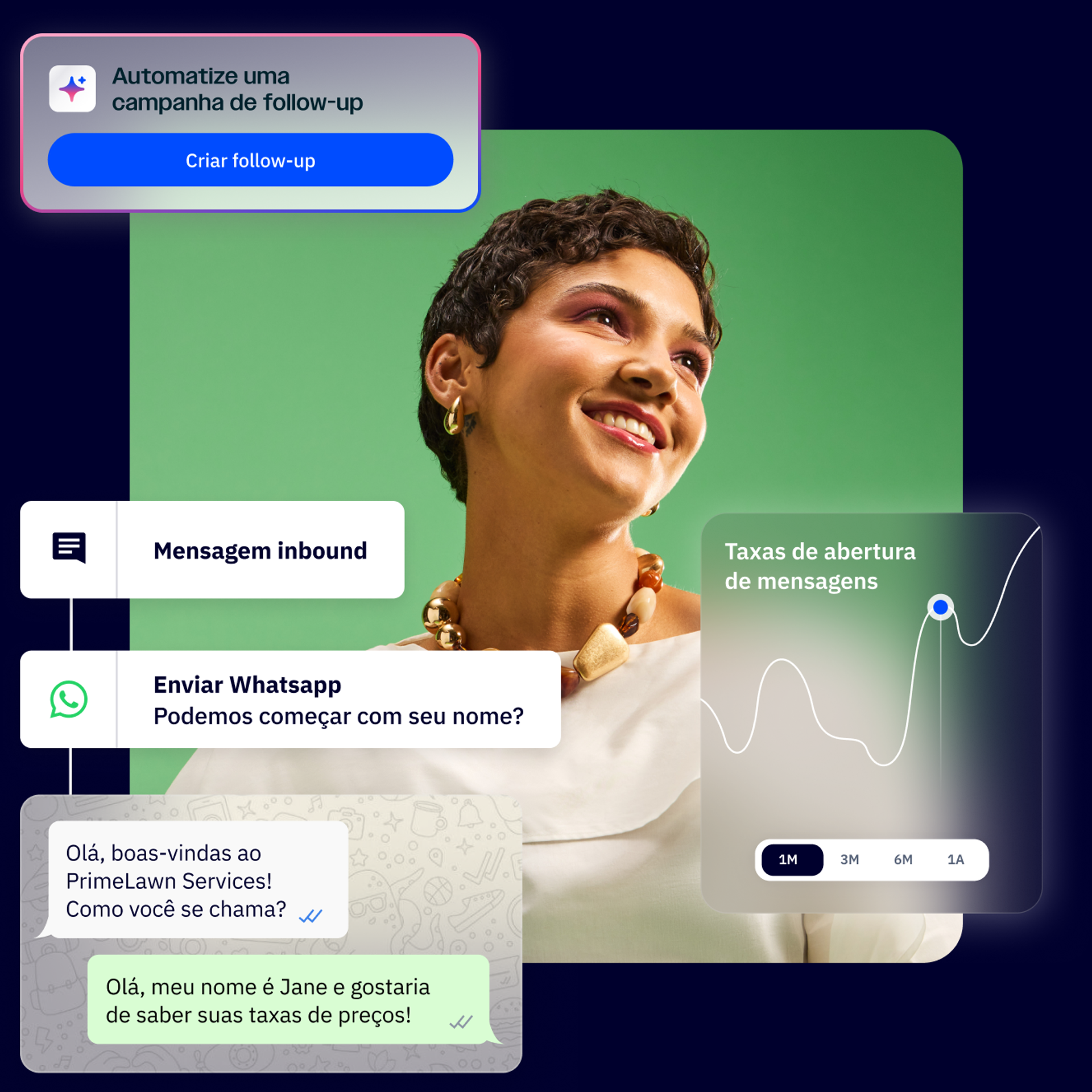 Encontre seus clientes onde eles estão com a automação do WhatsApp, que parece uma conversa, não uma campanha.