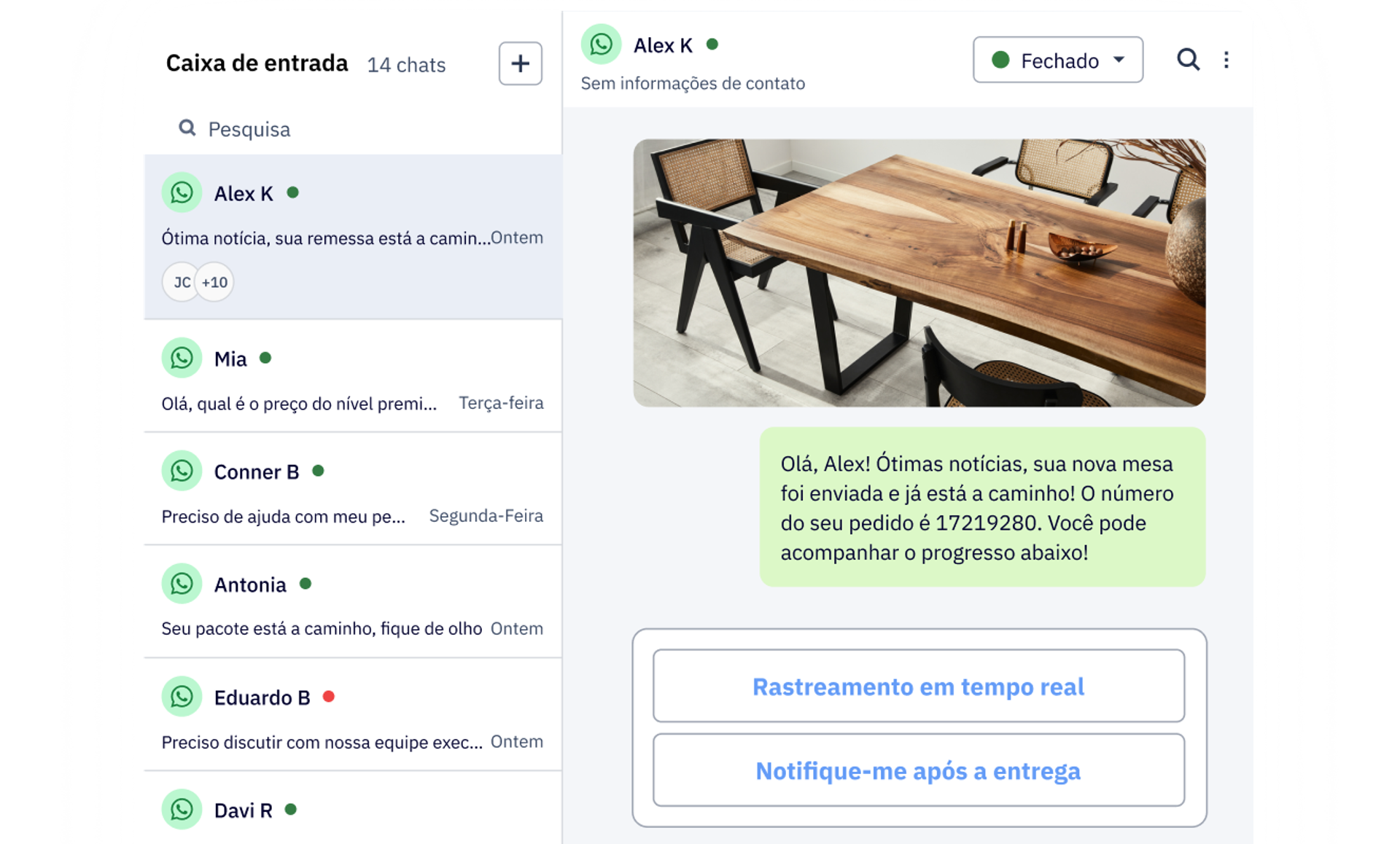 Com agentes de IA cuidando dos detalhes, as mensagens por WhatsApp da ActiveCampaign automatizam seu chat, ficam conectadas ao seu email e à automação de marketing e reúnem suas conversas em uma única caixa de entrada unificada.