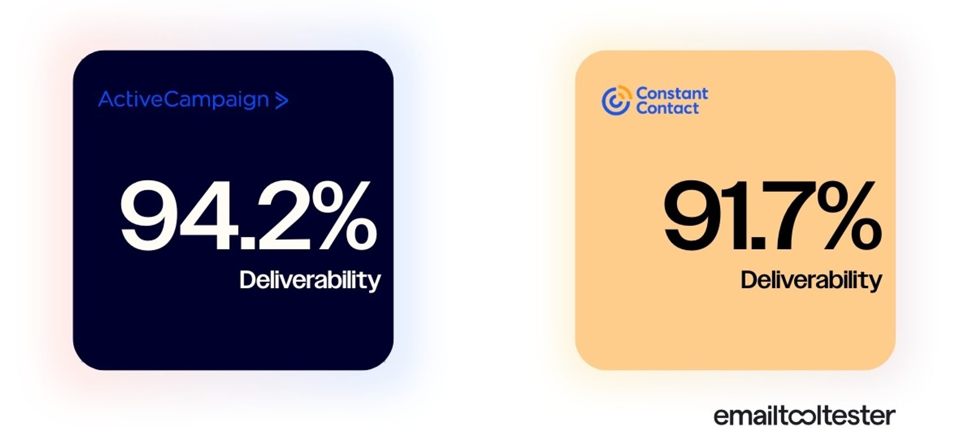 Deliverability is an essential metric to consider when comparing email marketing software. Both platforms can deliver email reliably, though ActiveCampaign scores higher in the most recent deliverability comparison done by third-party platform EmailToolTester, and is ranked #1 out of sixteen tools. Constant Contact comes in 2nd place.