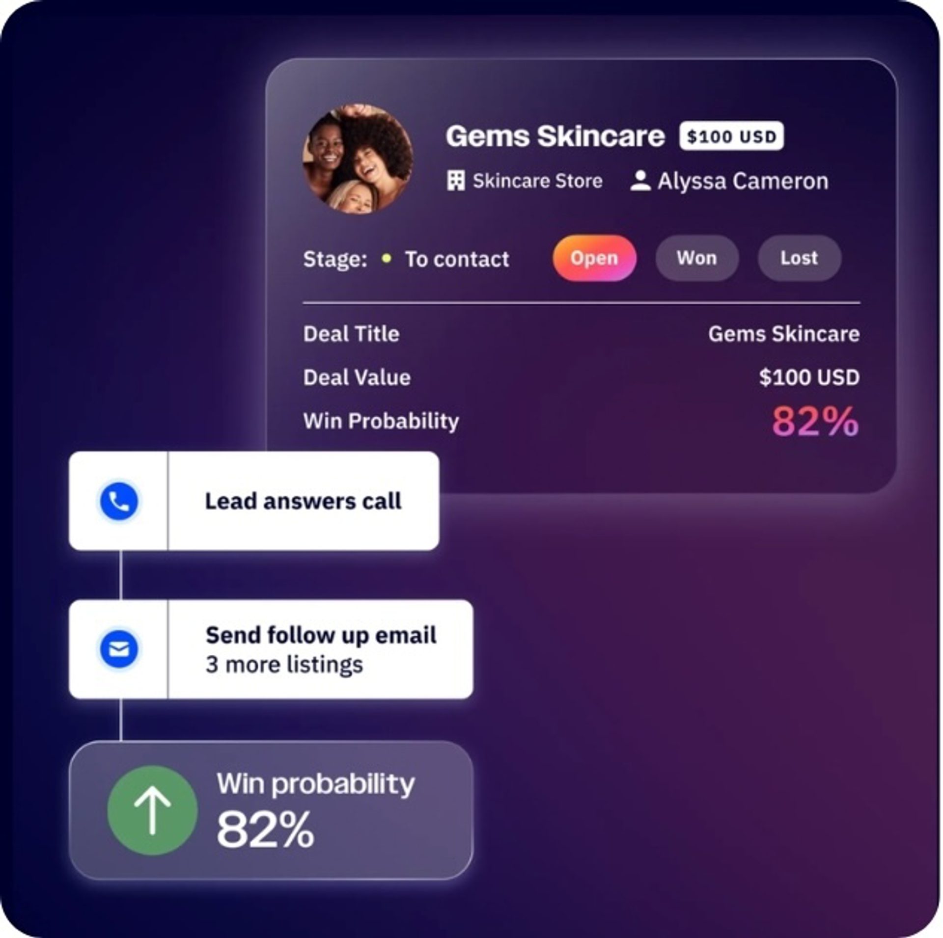 You can build unlimited pipelines with unlimited stages, then use automations to create deals, move deals between stages, assign owners, and trigger sales tasks based on contact behavior. Lead scoring and deal scoring help separate high-intent prospects from low-intent ones, and Win Probability tooling uses historical pipeline patterns to estimate likelihood of closing, so reps can prioritize effectively.
