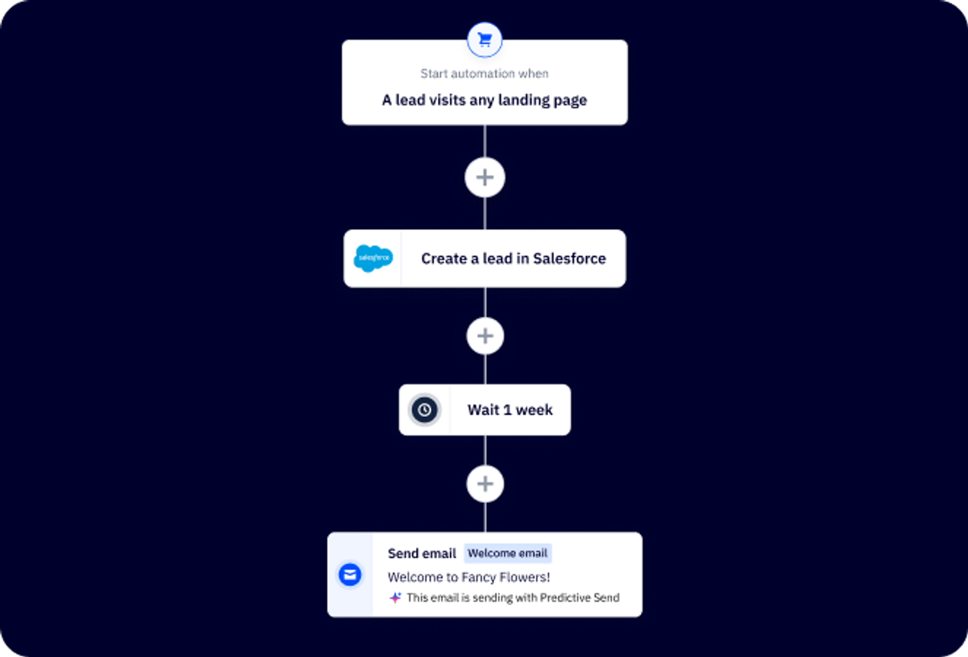 These workflows can include emails, SMS, site messages, and even CRM updates, all from one platform. It's perfect if you're managing both marketing and sales processes since it’s built to handle everything from lead nurturing to post-purchase follow-ups.