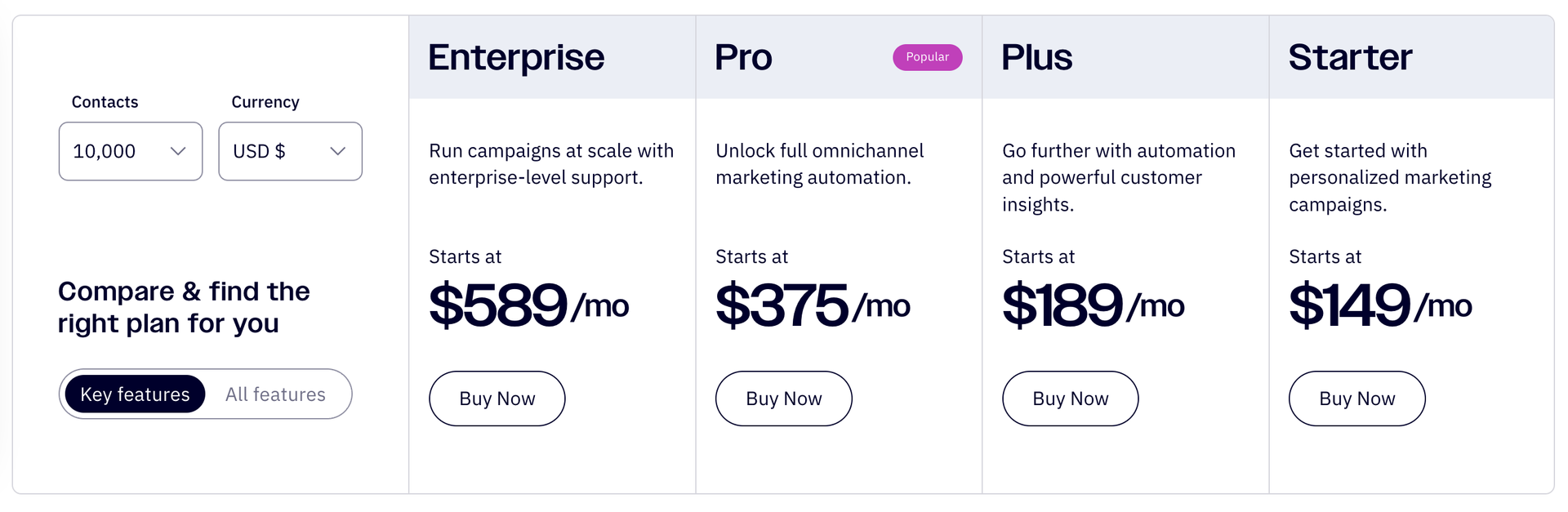 Pricing is based on up to 10,000 contacts.