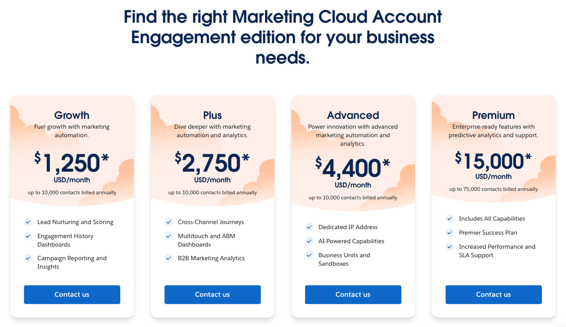 Salesforce’s Advanced plan climbs to $4,400/month for up to 10,000 contacts.