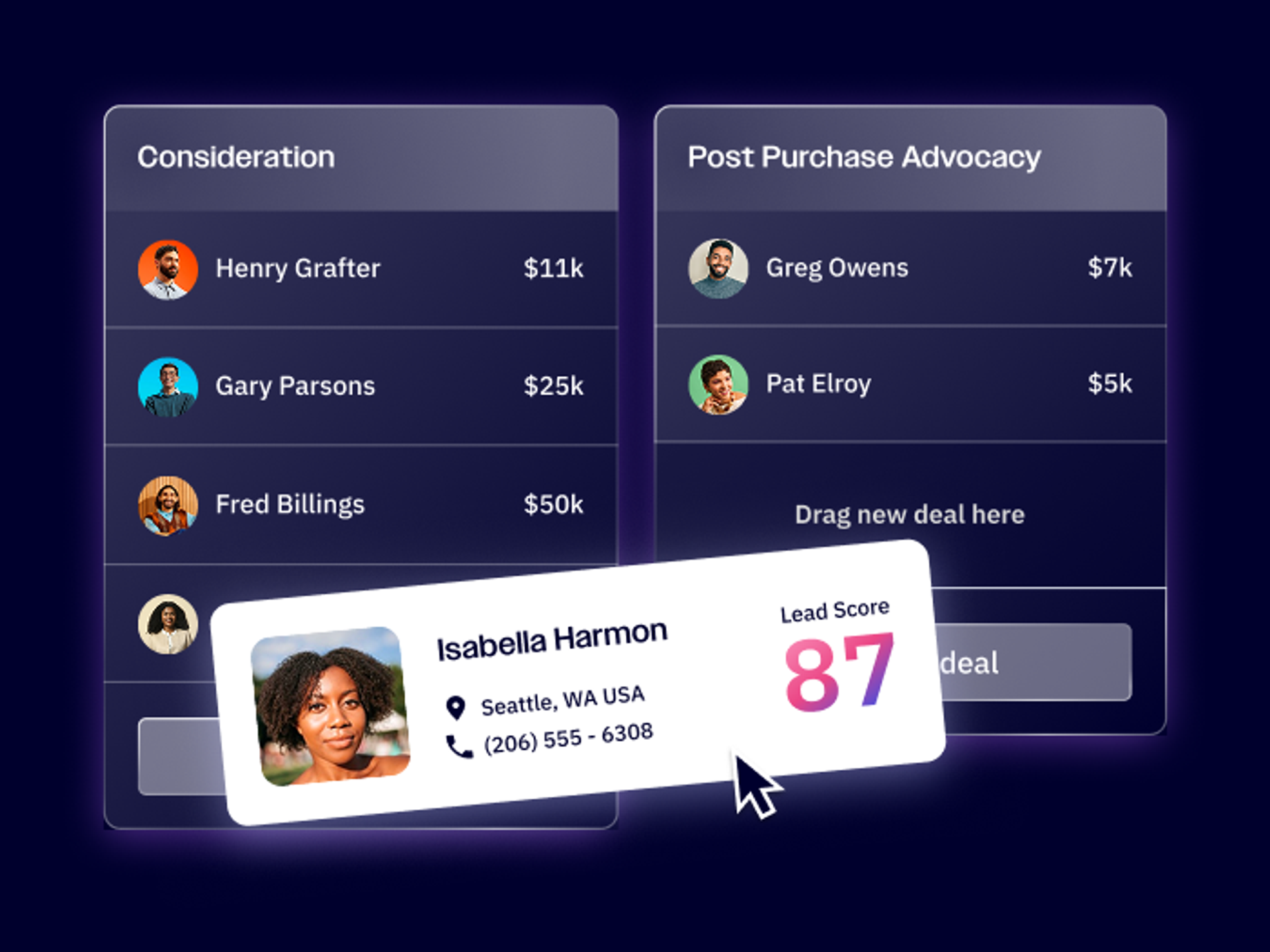 ✅ Built-in CRM with pipelines and lead scoring