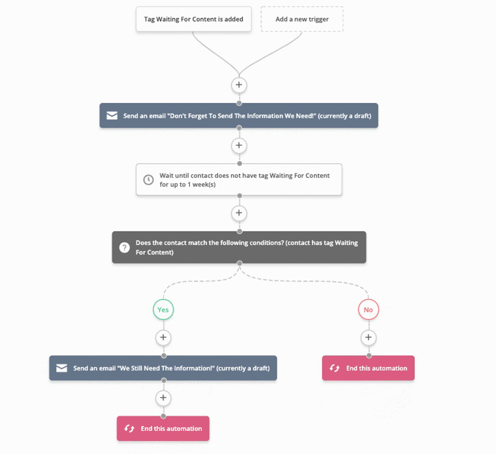 - The project manager tags the contact with “waiting for content”