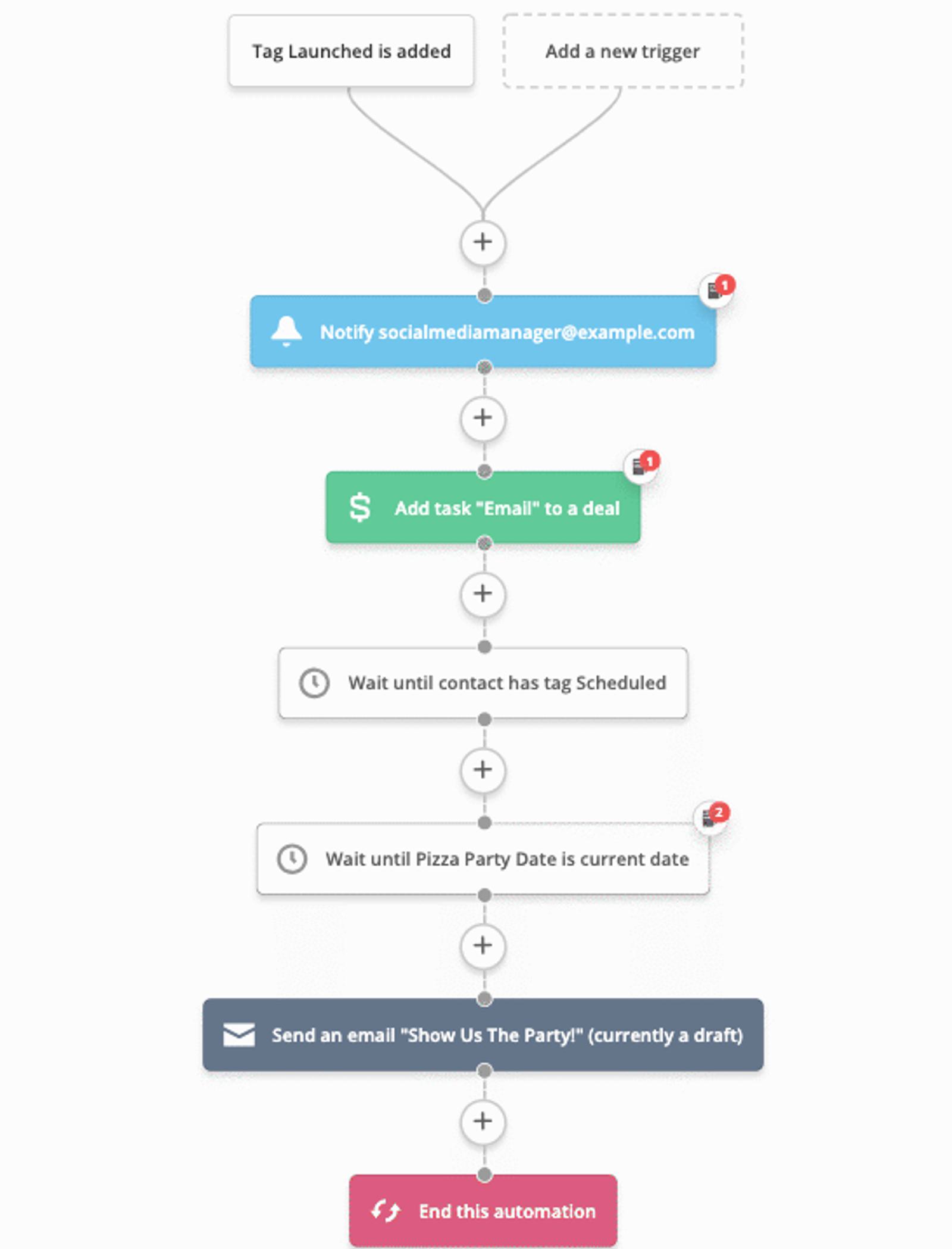 - ActiveCampaign automatically notifies Beefy Marketing’s social media manager