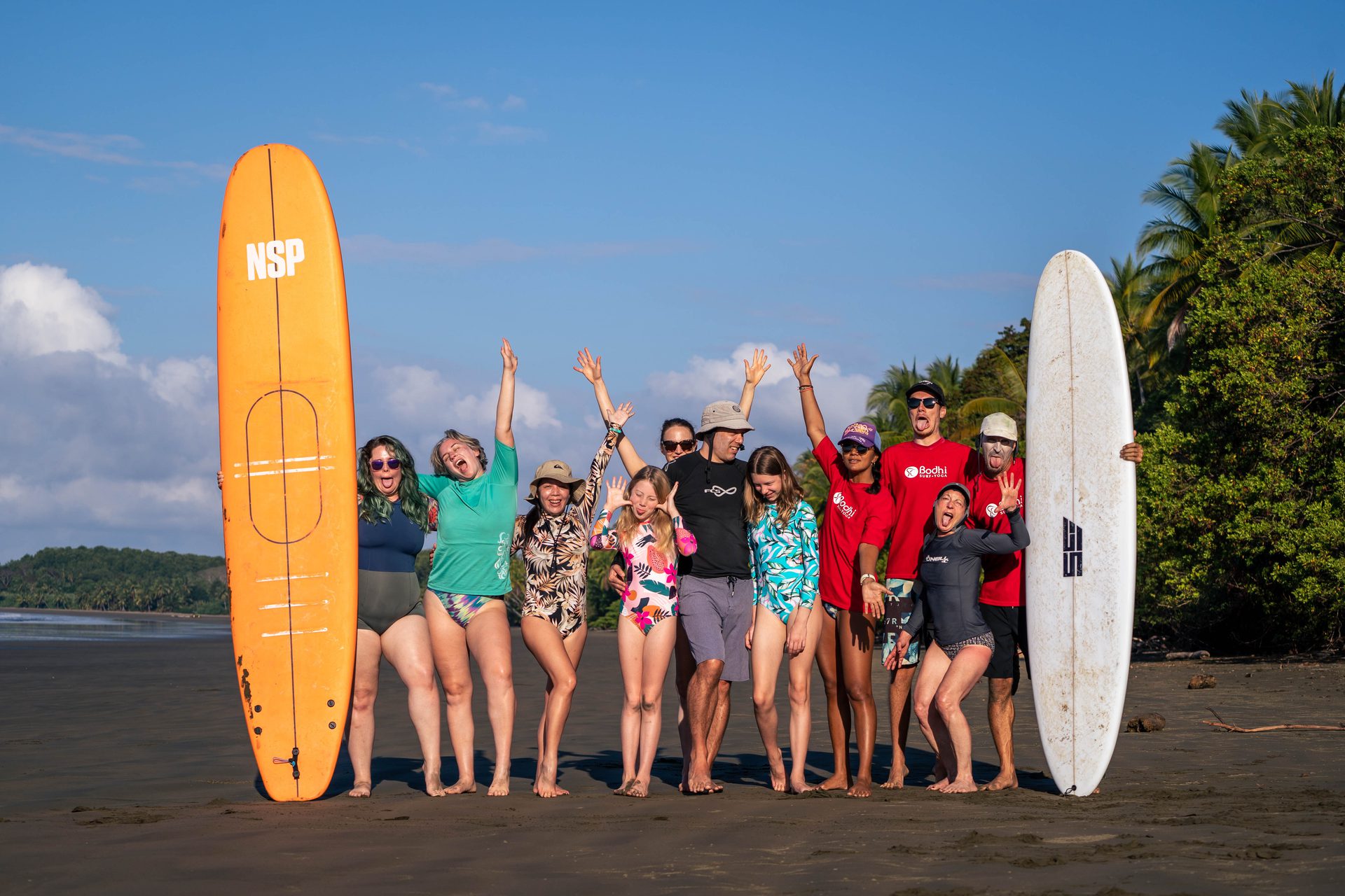 Bodhi Surf + Yoga is a sustainable surf and yoga school located in Uvita, a small town on the southern Pacific coast of Costa Rica. Founder Travis Bays started the retreat in 2010 with a mission to create meaningful connections with guests and the local community, providing a holistic experience that goes beyond just learning to surf or practicing yoga.