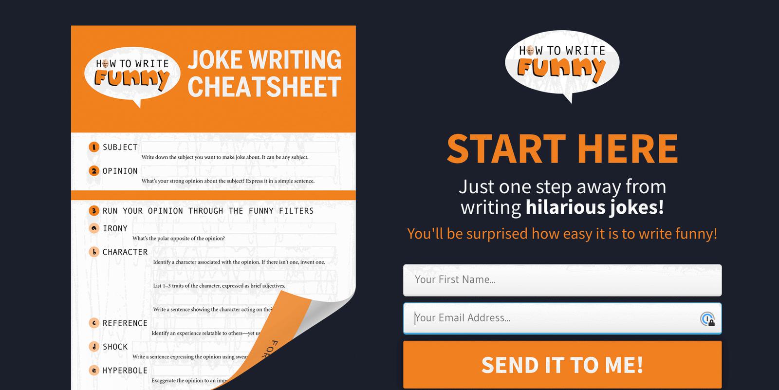 The moment after someone signs up for a joke-writing cheatsheet is also the moment they’re most likely to be excited about comedy writing.