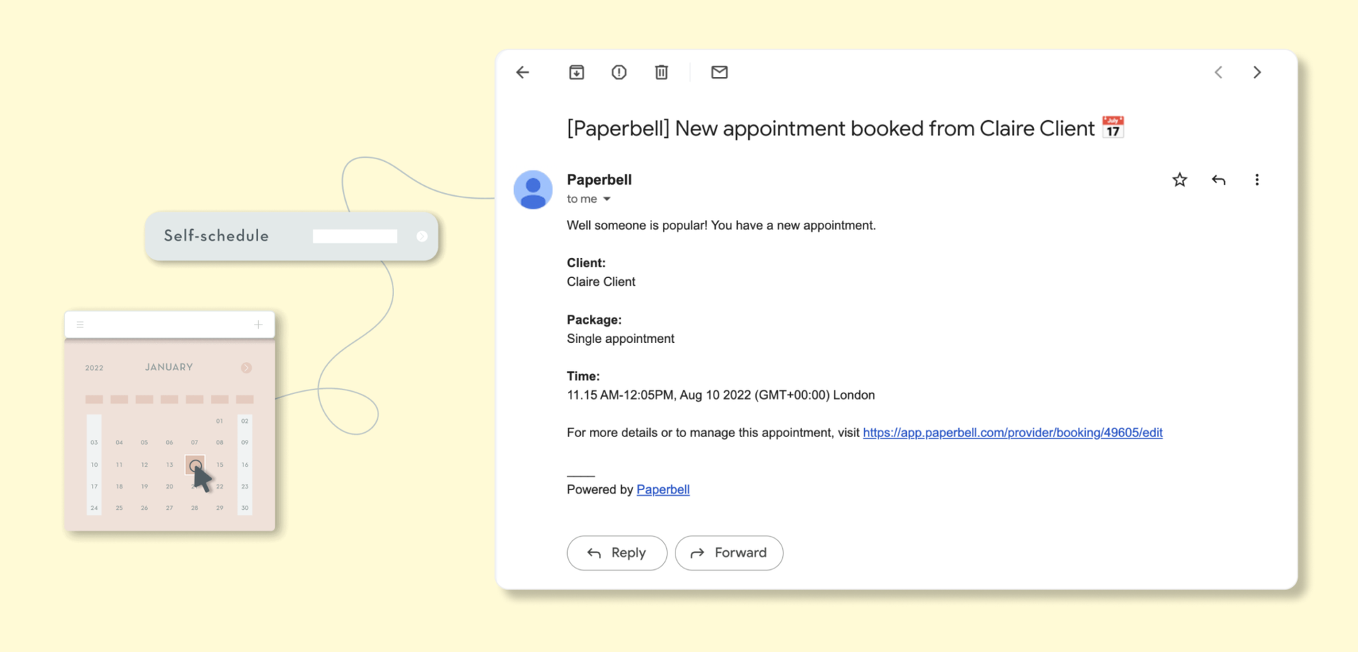 Adding the power of email to the Paperbell app: Once a client books an appointment, Postmark automatically sends a confirmation email to the coach and the client.