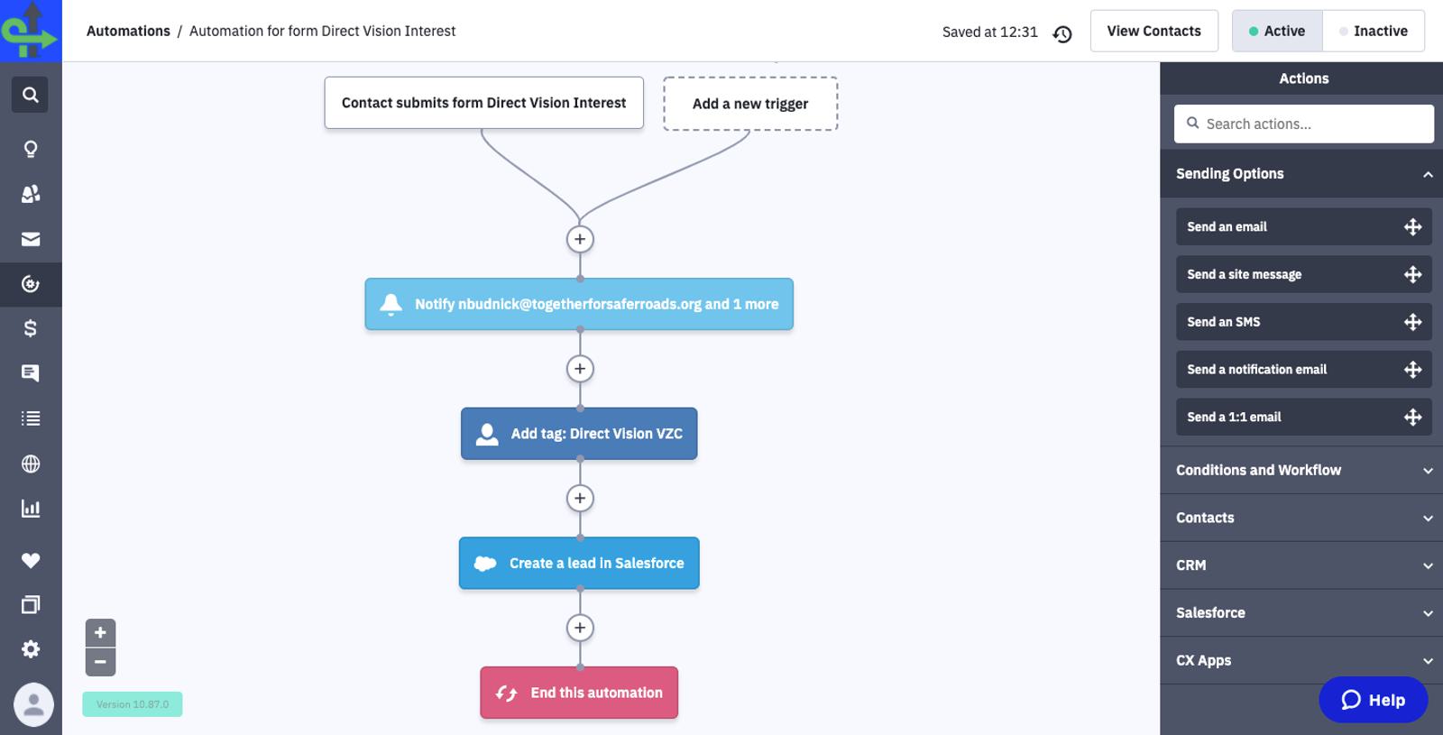 ActiveCampaign has functionality that I wouldn’t expect at this price point and some I haven’t seen at much higher prices. Their customer service is fantastic, and they truly want to help. The Salesforce integration works seamlessly.