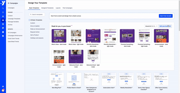 - AI Brand Kit: The YMCA used the AI Brand Kit to automate the design process for different types of emails—whether it was a new program announcement or a community event invite. By preloading their logo, fonts, and color schemes, team members could easily select a template and create a professional email in minutes.