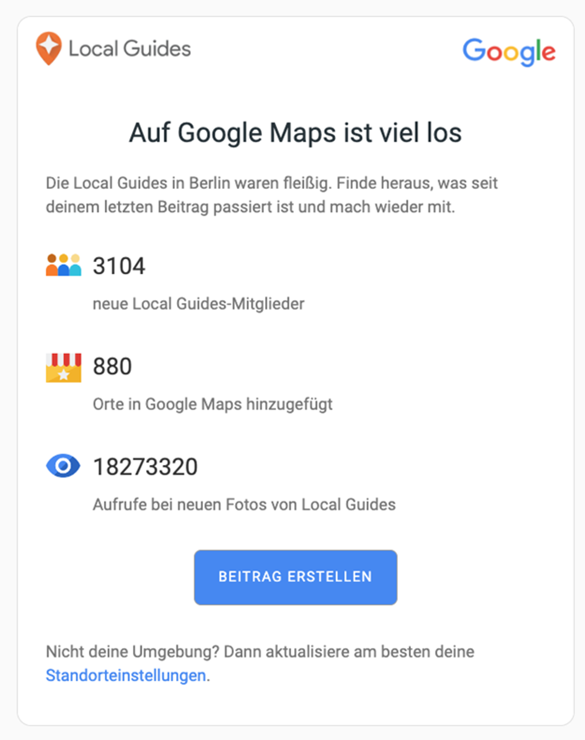 - Halten Sie es einfach. Inaktive Kunden möchten nicht viel Text lesen. Diese Willkommen-zurück-E-Mail von Google Maps enthält ein paar interessante, kurzweilige Fakten und bringt sie auf den Punkt.