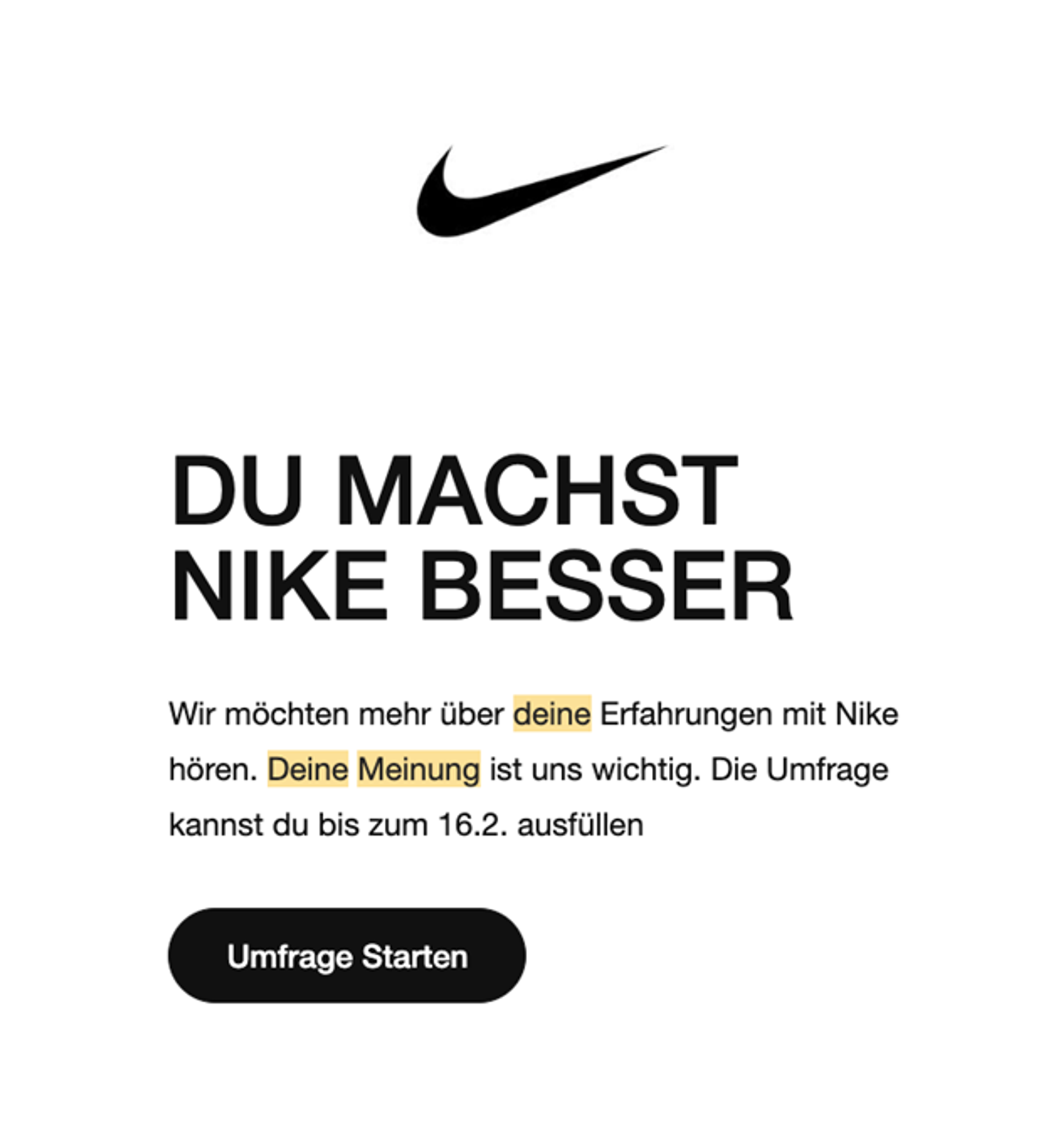 - Ein Gefühl der Zugehörigkeit bewirkt manchmal mehr als ein Rabattcode. Nike gibt seinen Kunden das Gefühl, mit ihrem Feedback etwas zu bewirken und will sie so zurückgewinnen.