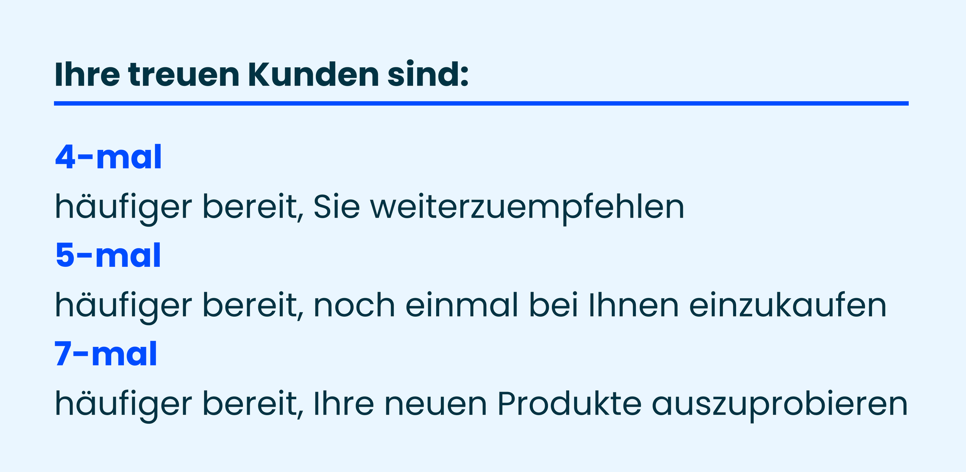 - Es ist fünfmal wahrscheinlicher, dass sie wieder bei Ihnen kaufen