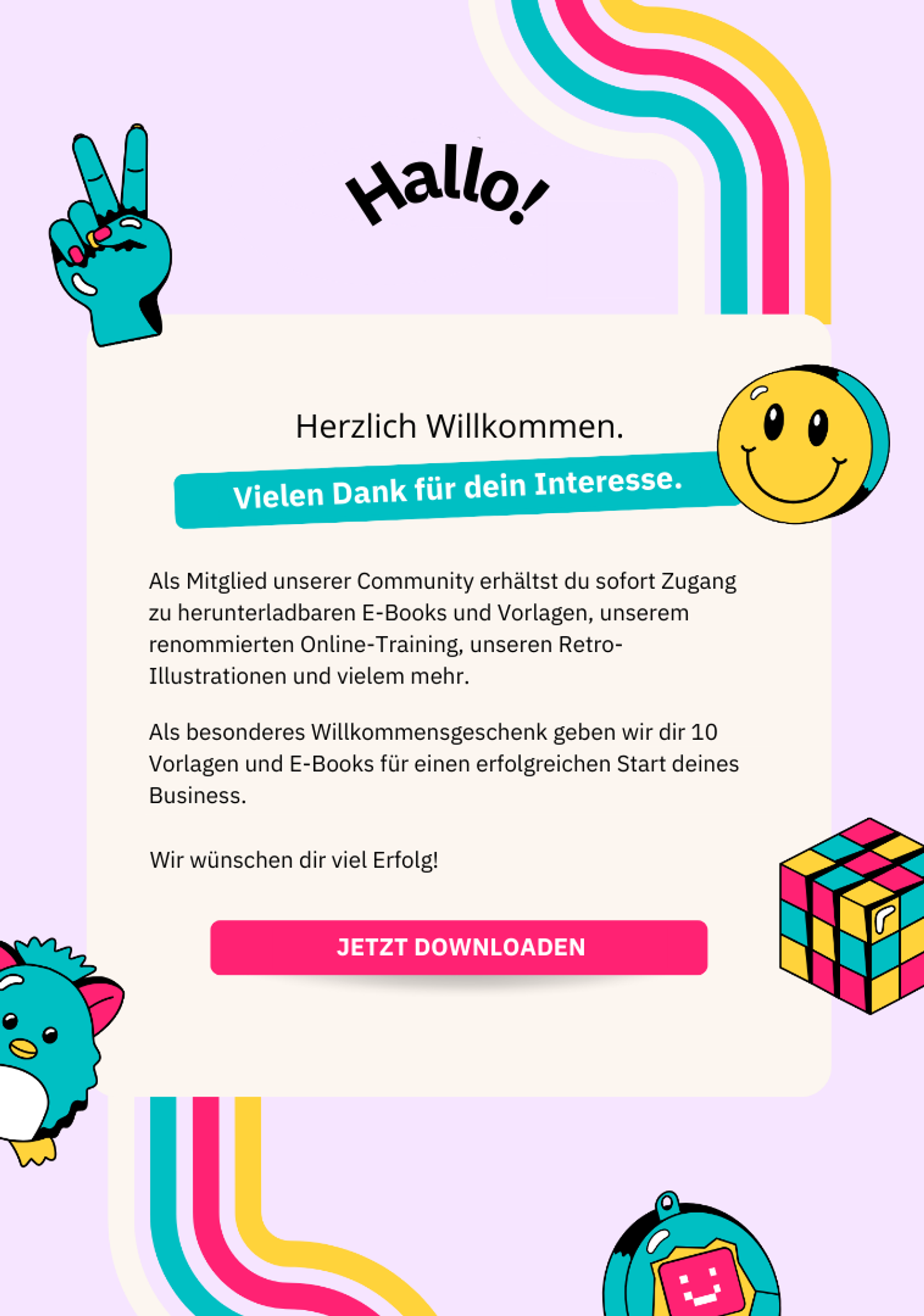 Diese enthält alle wichtigen Informationen, damit der Nutzer die angeforderten Inhalte mühelos herunterladen kann, wie beispielsweise den Titel des Downloads und eine Schaltfläche. Das ist besonders für Benutzer von Smartphones praktisch, die eine Broschüre oder ein E-Book lieber später auf ihren PCs herunterladen möchten.