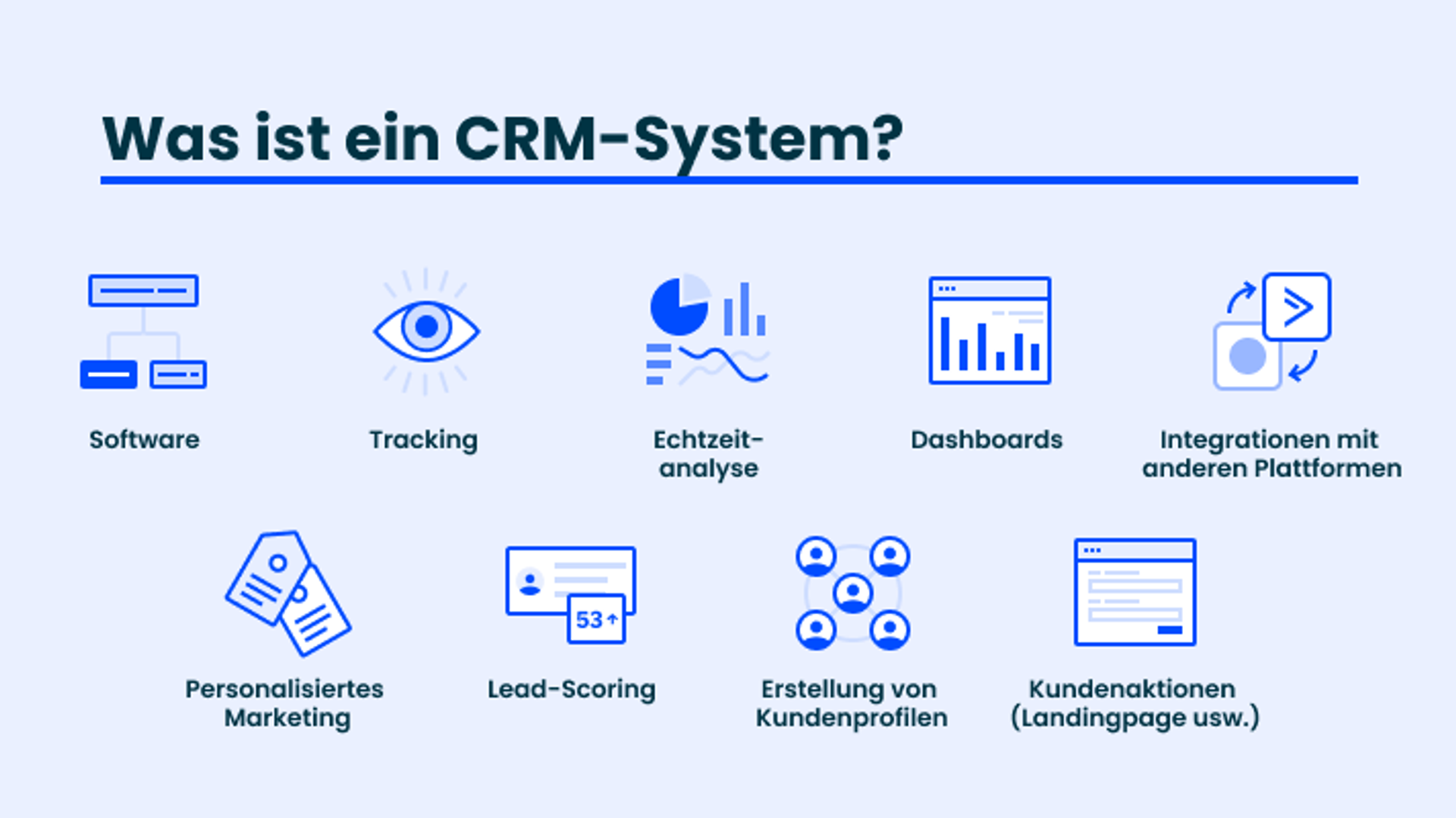 Ein CRM lässt sich mit anderen Plattformen und Tools integrieren und hilft Ihnen dabei, ein vollständiges Bild des Online- oder Offline-Verhaltens Ihrer Kunden zu erhalten und das Erlebnis für Ihre Kunden und Leads zu verbessern.