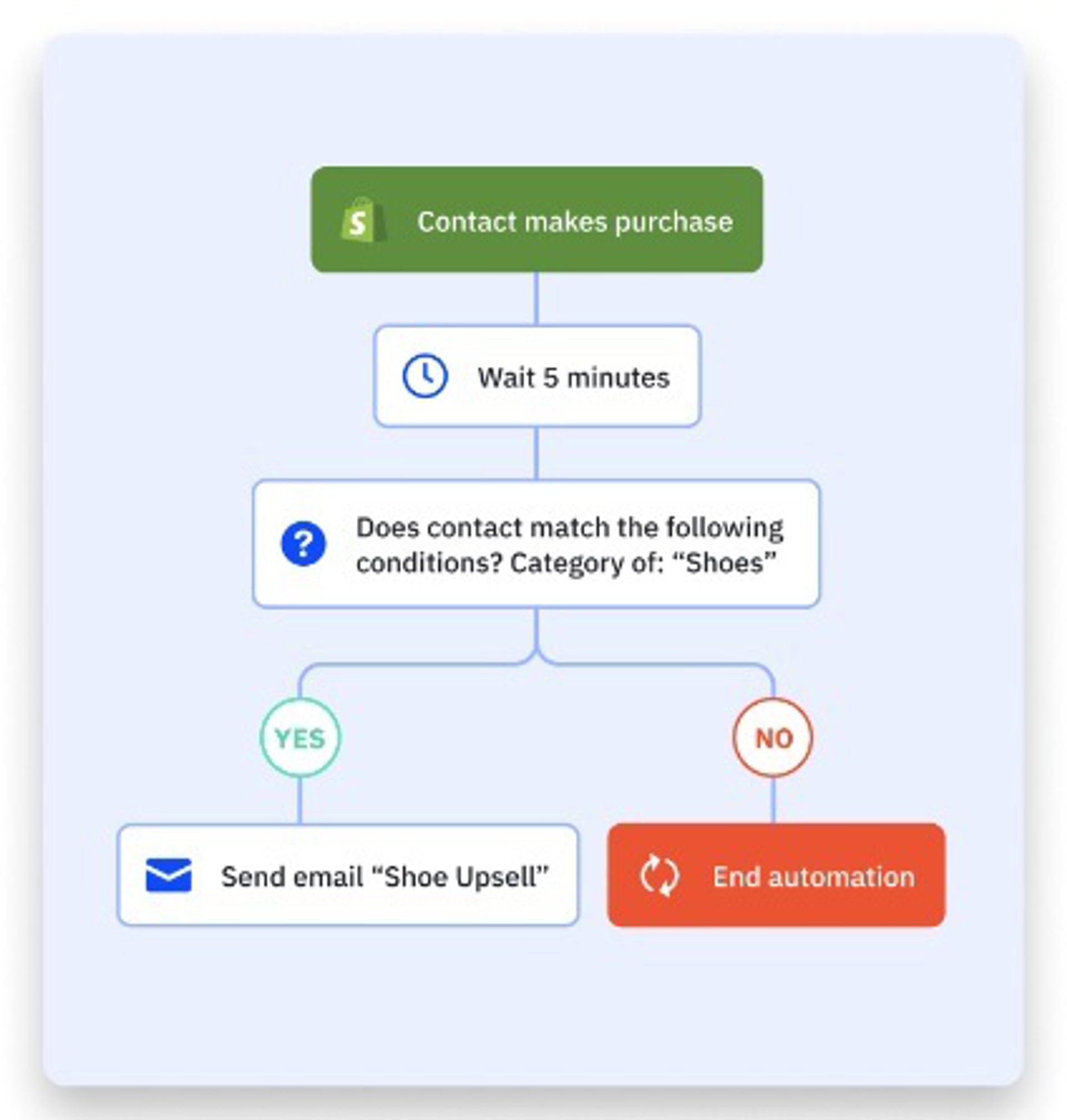 Nutze Upselling-Möglichkeiten und erreiche deine Kunden mit zielgerichteten Nachrichten, die sich automatisieren lassen. Quelle: ActiveCampaign