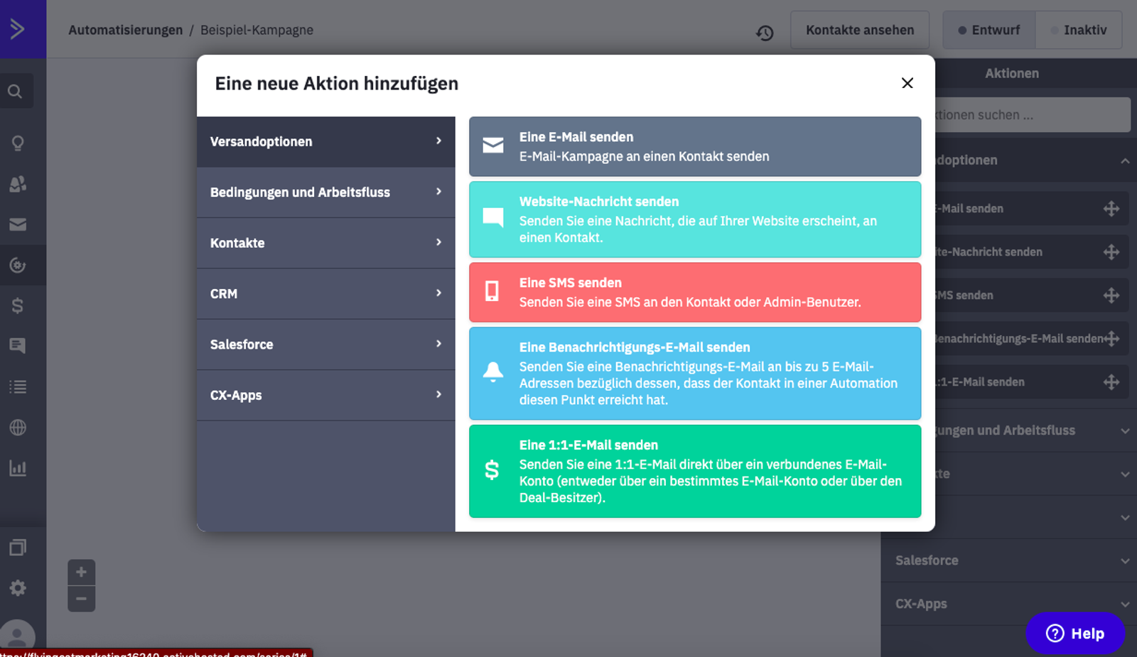 Beispiel für eine CRM-Kampagne in ActiveCampaign