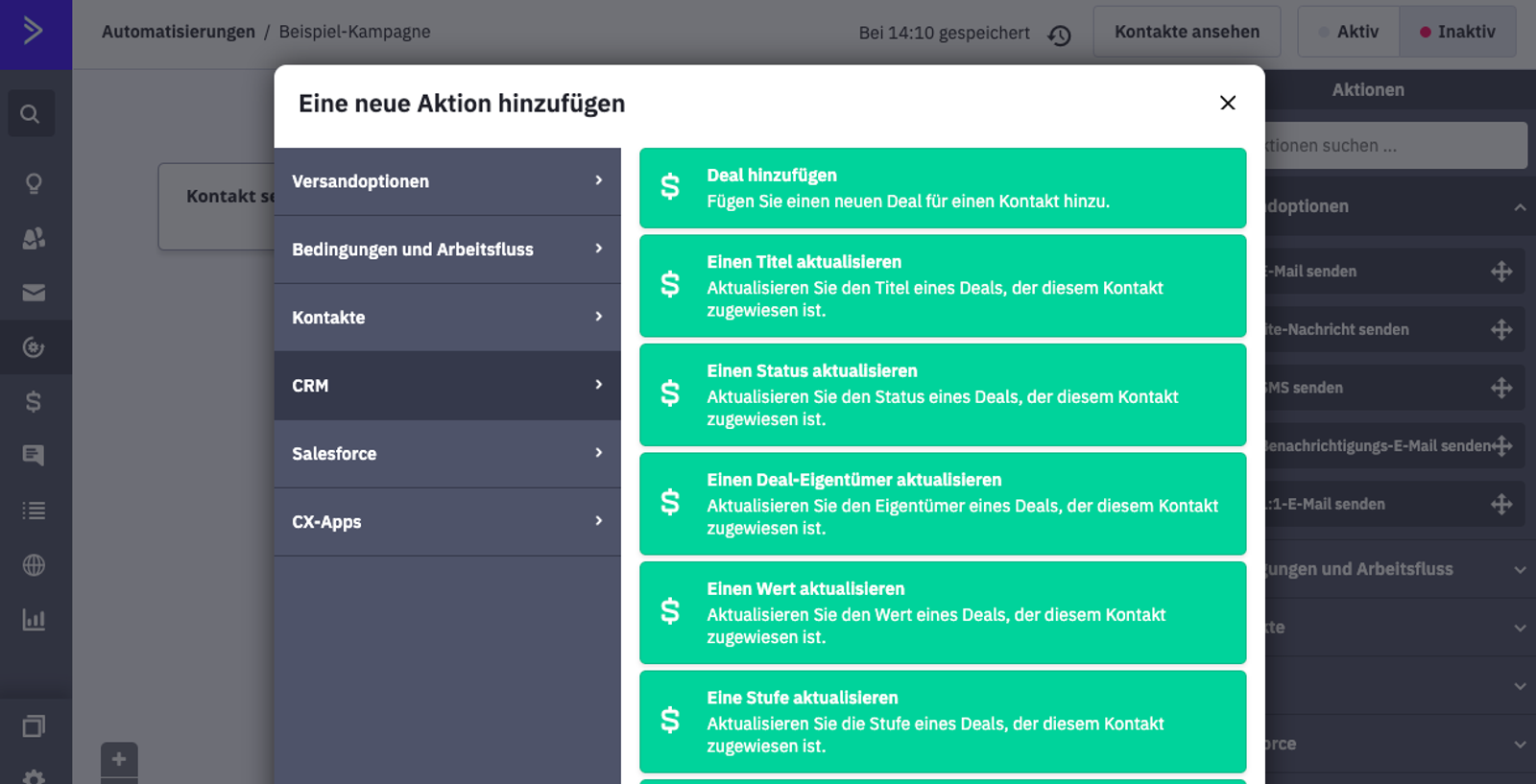 5. Alternativ kannst du auch noch weitere Aktionen automatisieren und „Deals“ mit den Kunden aktualisieren. So weiß dein Sales-Team Bescheid, in welchem Punkt des Sales-Funnels der Kunde sich gerade befindet.