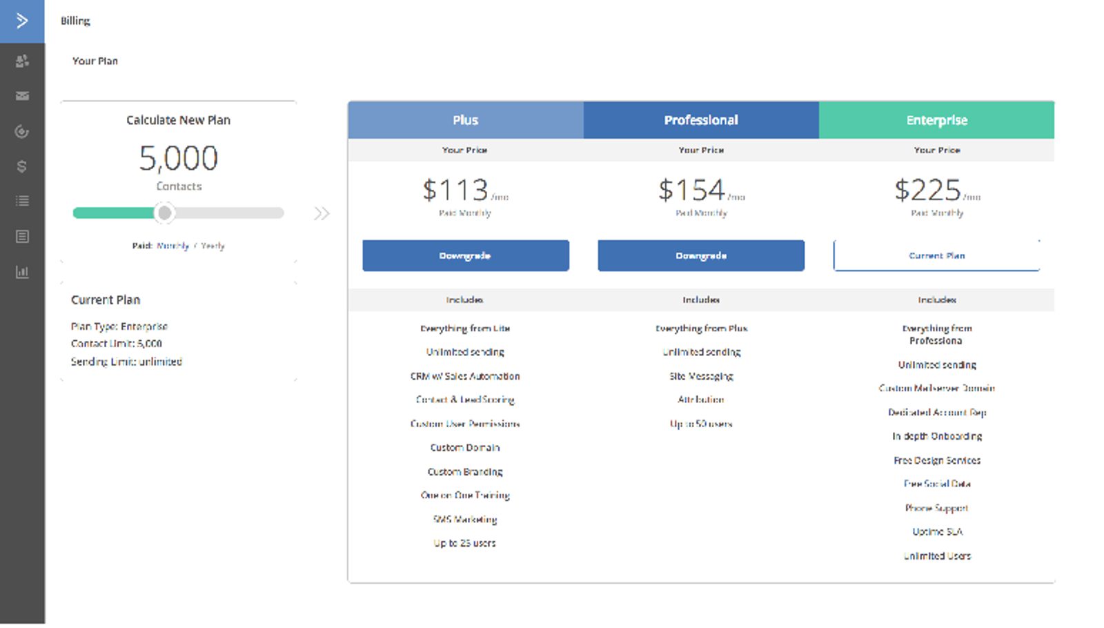 So sieht es aus, wenn du dein Konto in ActiveCampaign up- oder downgraden möchtest.