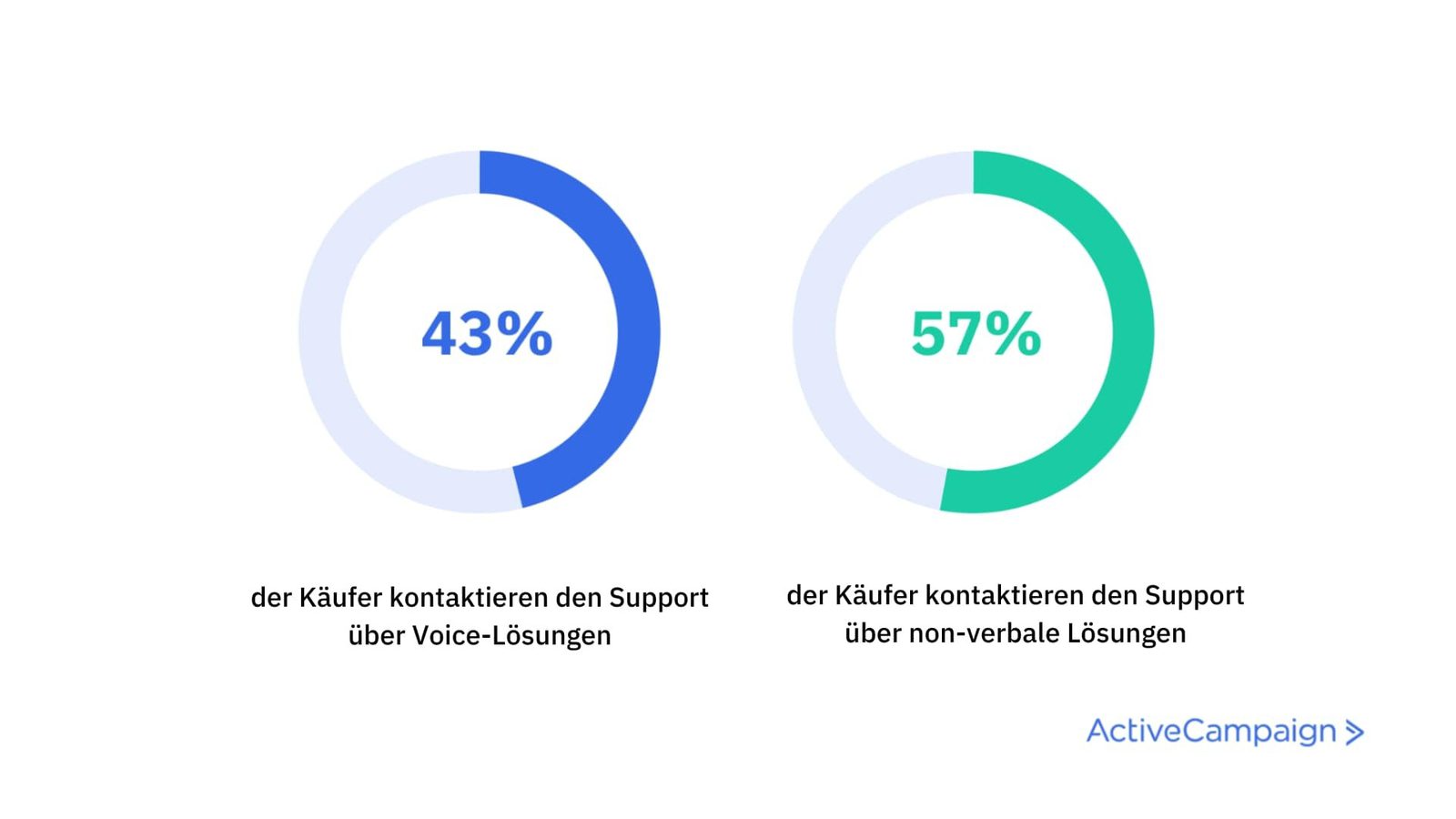 Das bedeutet im Umkehrschluss, dass 57 % der Käufer lieber über non-verbale Mittel, wie Chatbots, FAQs, E-Mails usw., mit der Kundenbetreuung interagieren.