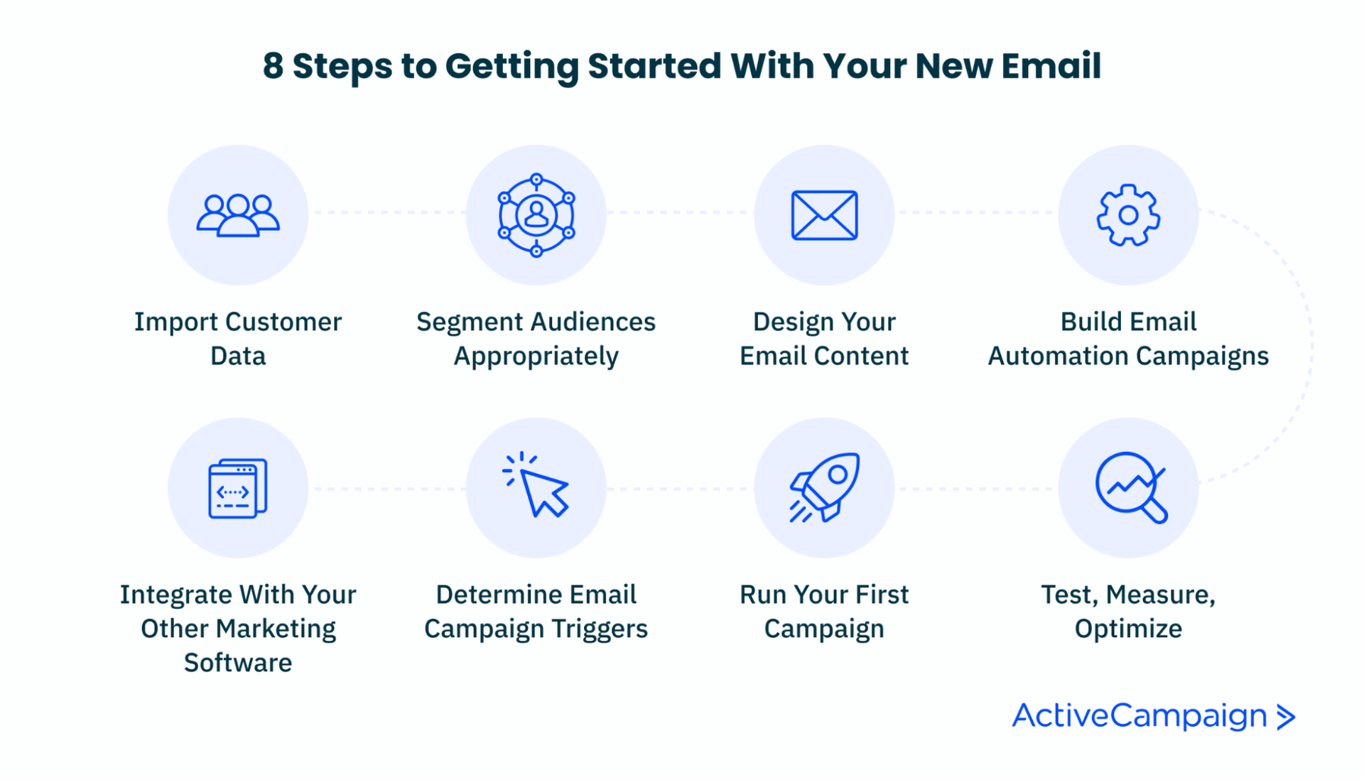 Nehmen wir an, du hast eine 5-stufige Sequenz für neue Käufer entwickelt. Sobald sie ihren ersten Kauf getätigt haben, werden sie Teil einer Kampagne, die sie an Bord willkommen heißt, in der man ihnen für den Kauf dankt, sie über die Marke informiert und schließlich versucht, sie zu Stammkunden zu machen. Richte jede dieser Sequenzen in deiner E-Mail-Marketing-Software ein und verwende dabei die Inhalte, die du in Schritt 3 erstellt hast.