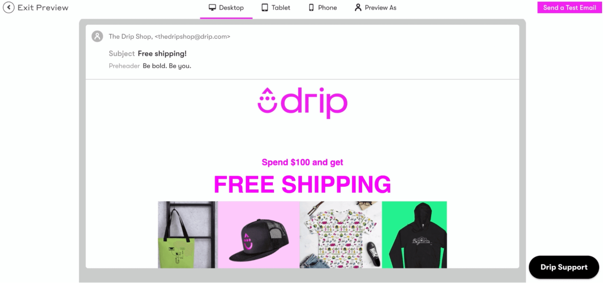 Drip bietet viele der typischen Funktionen, nach denen du bei der Durchführung von E-Commerce-E-Mail-Marketing-Kampagnen suchst: