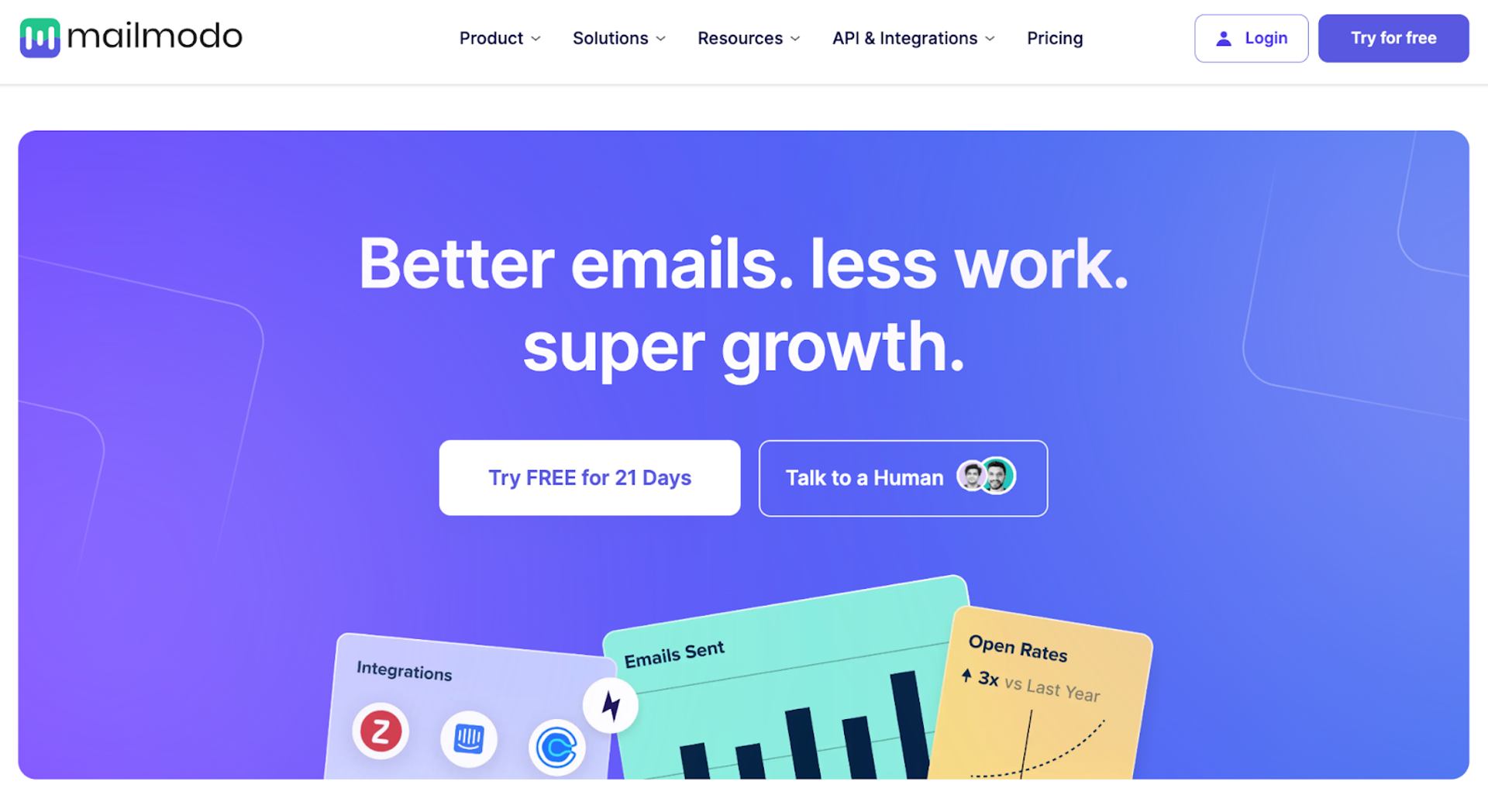 Mailmodo bietet eine benutzerfreundliche Drag-and-Drop-Oberfläche, mit der du deine Marketing-E-Mails ganz einfach gestalten und anpassen kannst. Du kannst die Leistung deiner E-Mails mit detaillierten Analysen und Berichten verfolgen und den Versand von E-Mails zu einem bestimmten Zeitpunkt oder Datum planen.