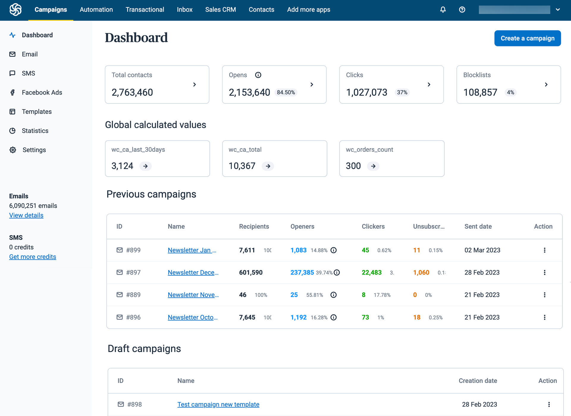 Brevo ist eine gute Wahl für Vermarkter mit kleinem Budget, da der kostenlose Tarif bis zu 300 Sendungen pro Tag und eine unbegrenzte Anzahl von Kontakten umfasst.