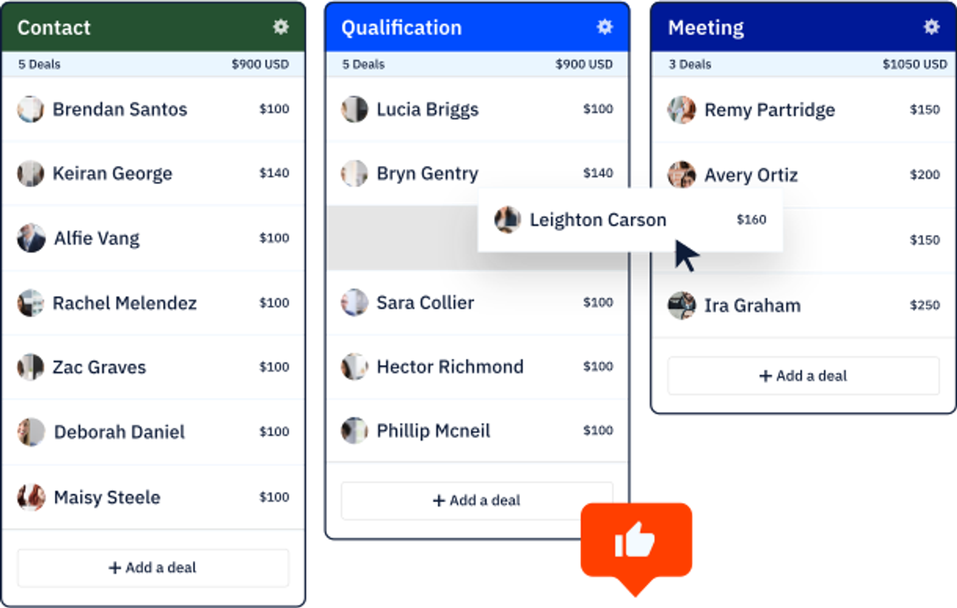 ActiveCampaign dient auch als CRM (Customer Relationship Management Platform, Kundenbeziehungs-Management-Plattform) für deinen Vertrieb, was bedeutet, dass du dir diese zusätzliche Kostenstelle sparen kannst und den Prozess der Einrichtung einer komplexen Integration zwischen 2 Plattformen vermeiden kannst.