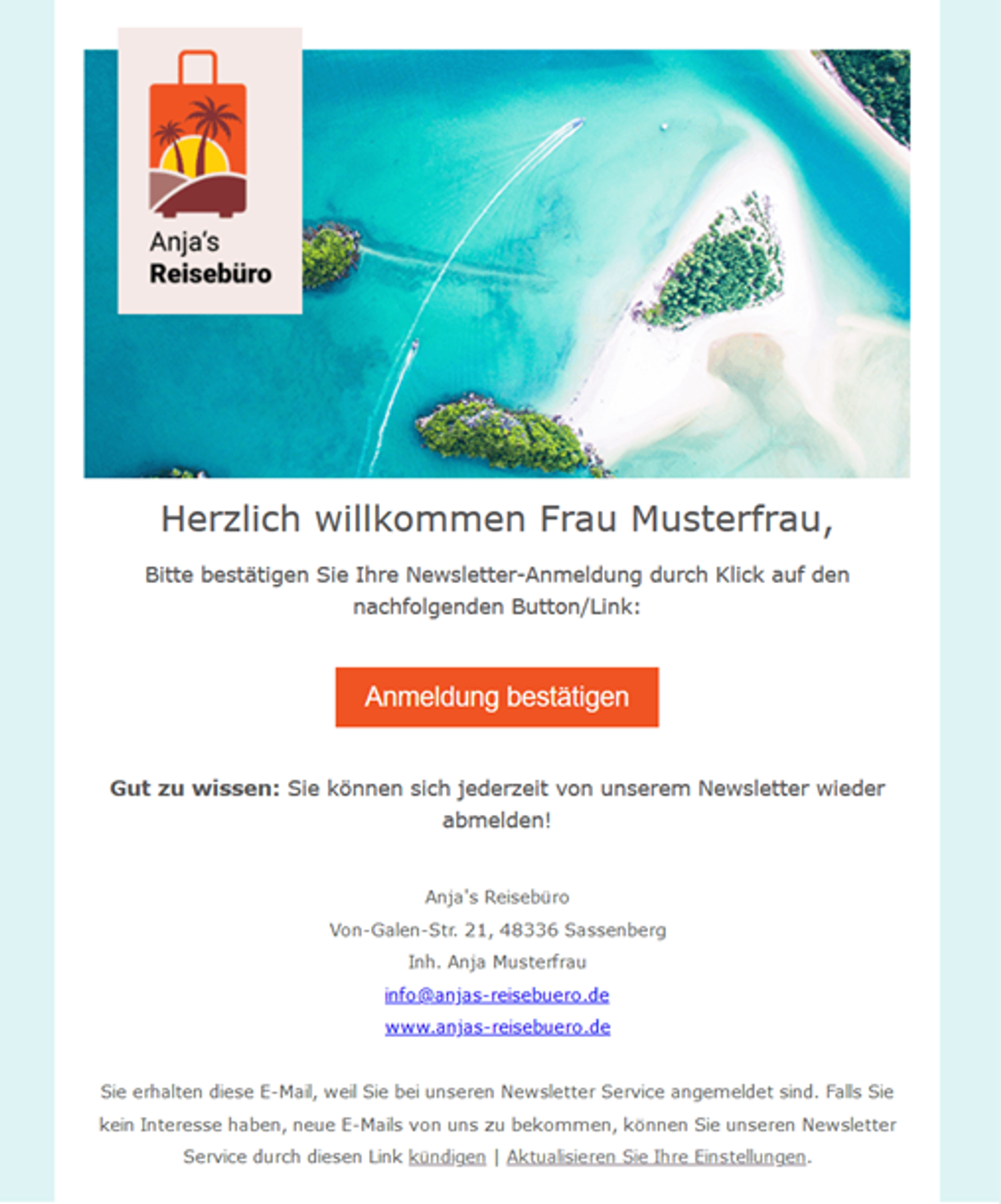 Auch wenn es auf den ersten Blick wie eine normale Mail erscheint, die fast jeder schon einmal erhalten hat, so ist diese unbedingt wichtig, da sie die rechtliche Grundlage für die DSGVO-konforme Arbeit darstellt. Newsletter dürfen nur versendet werden, wenn der Empfänger damit einverstanden ist. Dazu kommt, dass die Option, sich abmelden zu können, vorhanden sein muss.