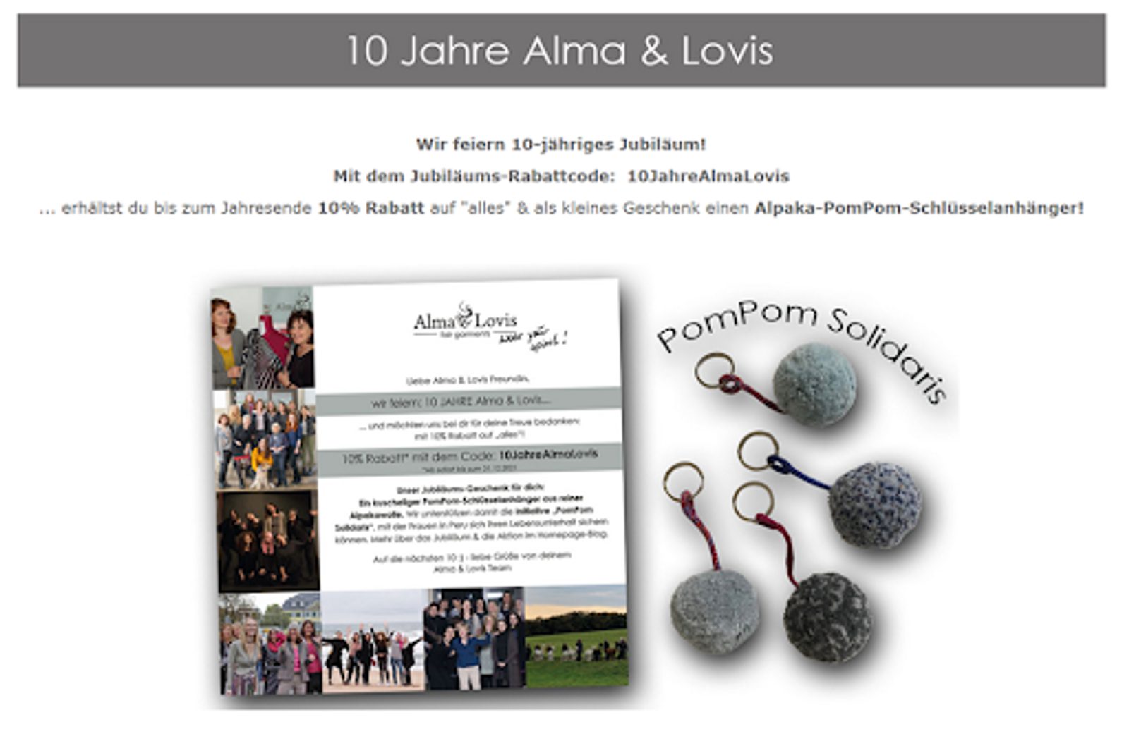 Das nachhaltige deutsche Modeunternehmen Alma & Lovis bedankte sich mit einem Rabattcode bei seinen Kunden für den 10-jährigen Bestand des kleinen Labels.
