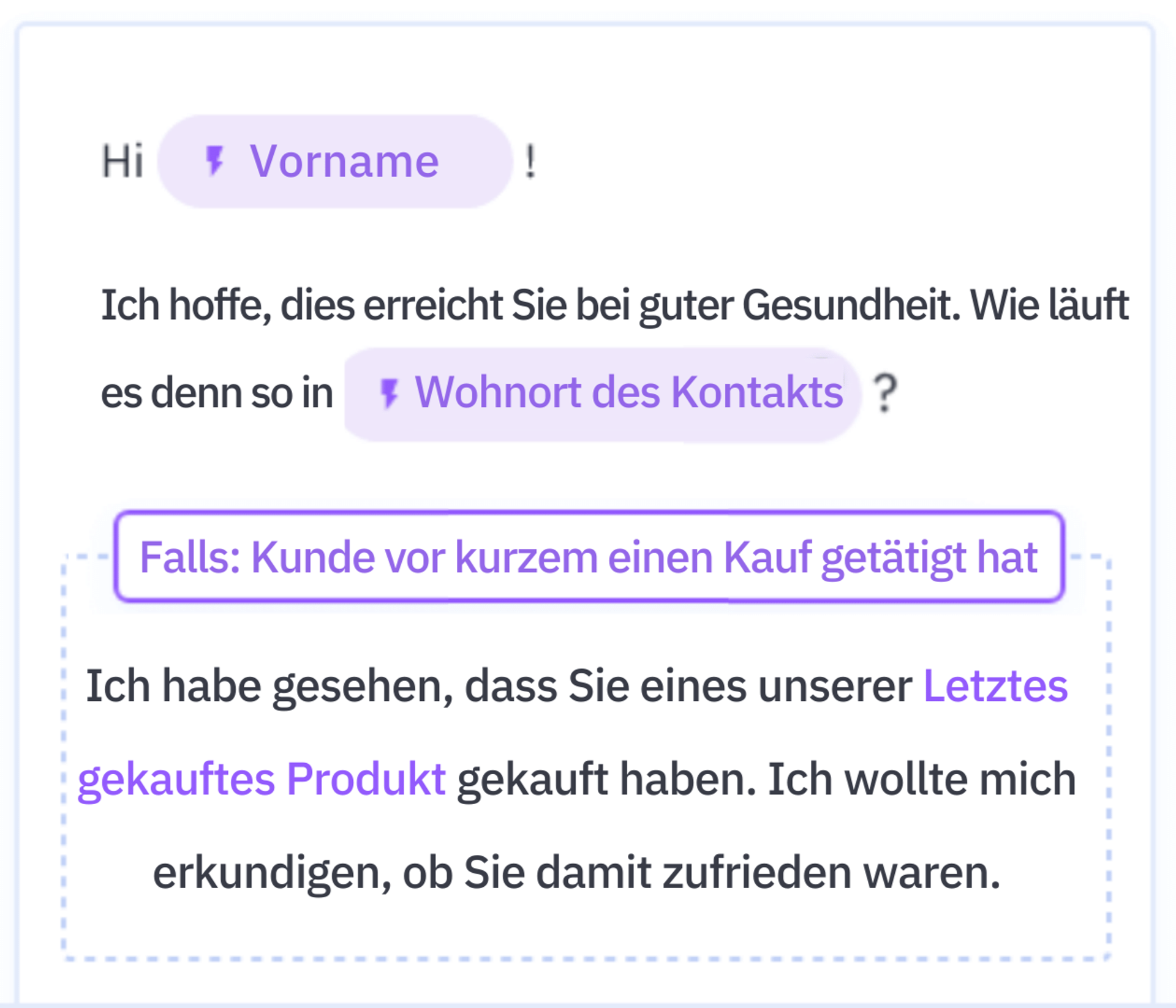 Beispiel für die einfache (und automatische) Personalisierung der Inhalte Deiner Marketing-E-Mails mit ActiveCampaign. (Quelle: ActiveCampaign)
