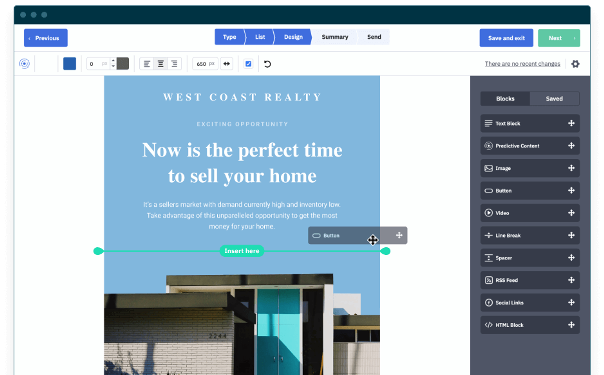 Drag-and-Drop-Editor von ActiveCampaign zum Erstellen ansprechender Marketing-E-Mails. (Quelle: ActiveCampaign)