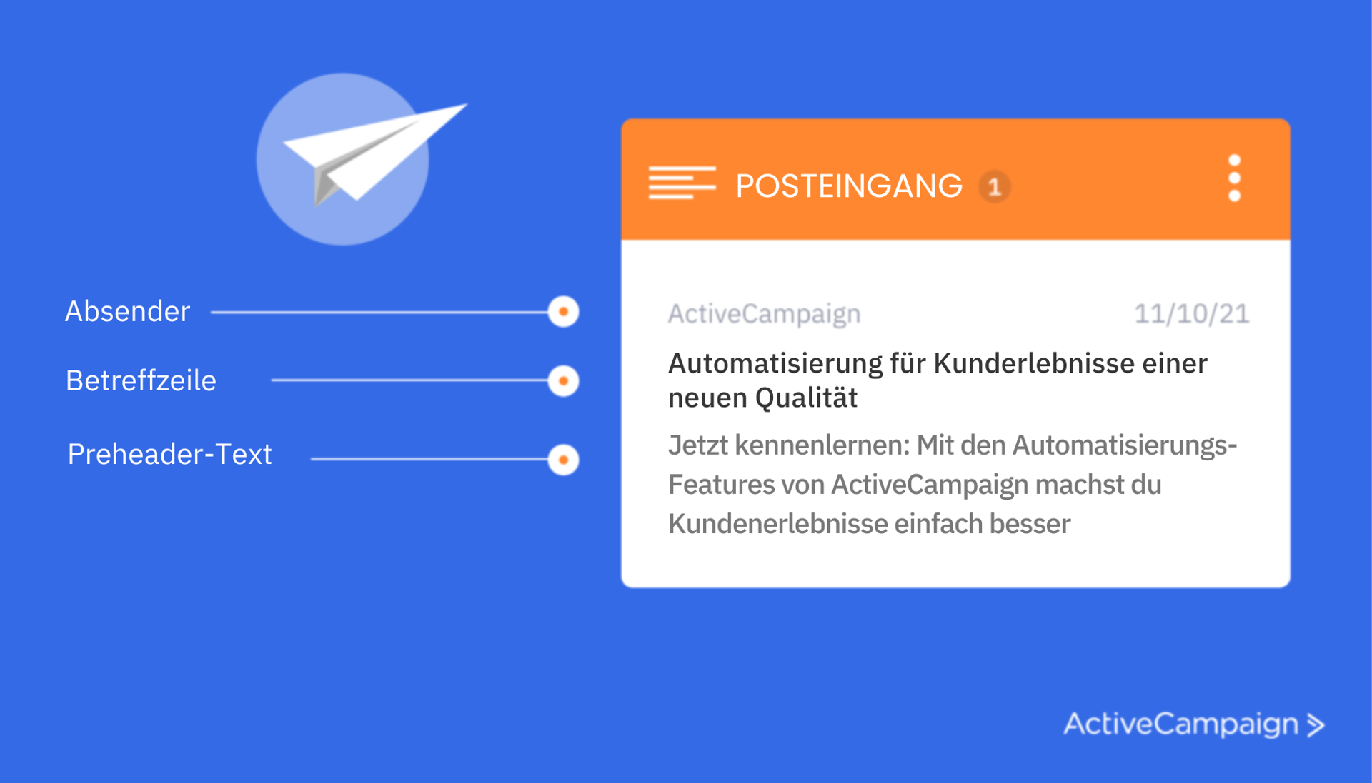 Betreffzeile und Preheader-Text sind erfolgskritische Elemente jeder E-Mail. Zur Optimierung von diesen eignet sich ebenso hervorragend das E-Mail-Tracking. (Quelle: ActiveCampaign)