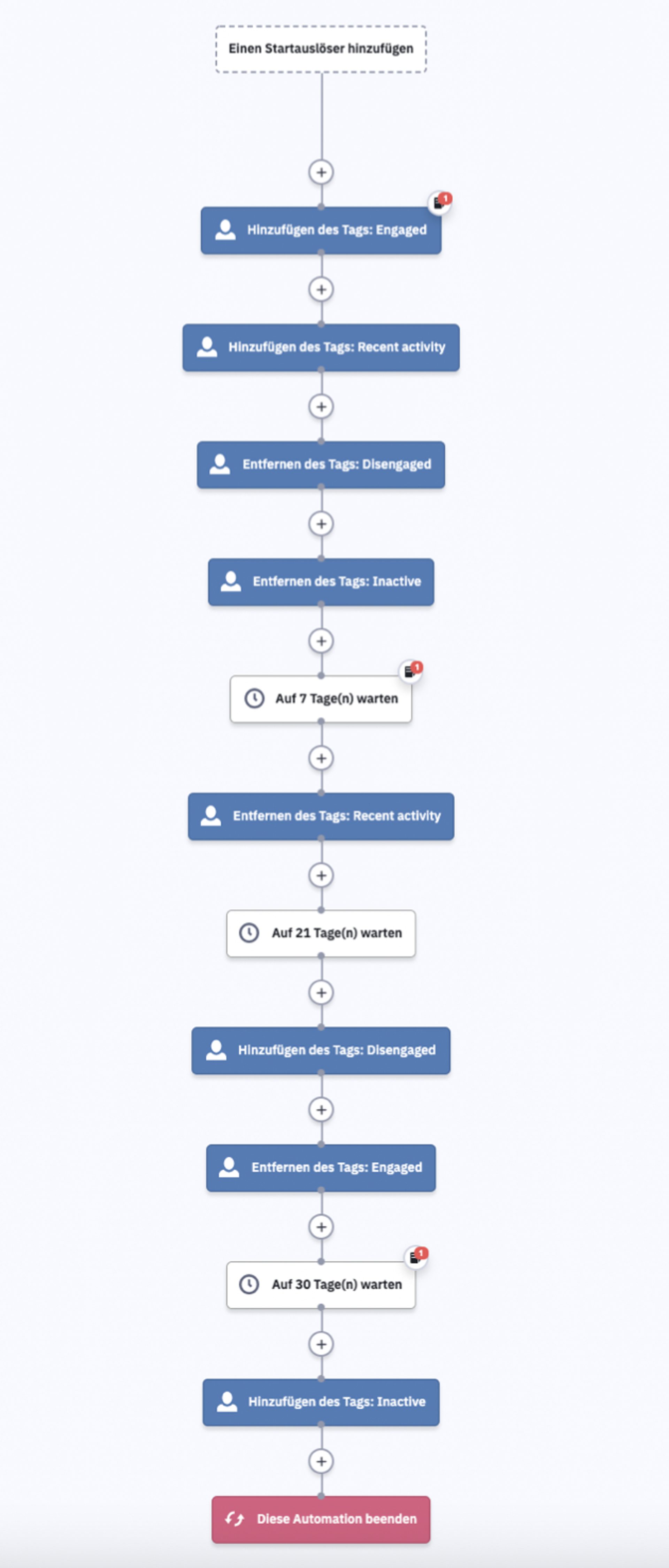Wenn du dein Kundenengagement durch E-Mail-Segmentierung steigern willst, eignen sich Tags am besten. Sie spiegeln das Engagement deiner Abonnenten in ihrem aktuellen Zyklusstadium wider und ermöglichen dir, den Status immer wieder anzupassen, während sich ein Kontakt durch den Engagement-Zyklus bewegt.