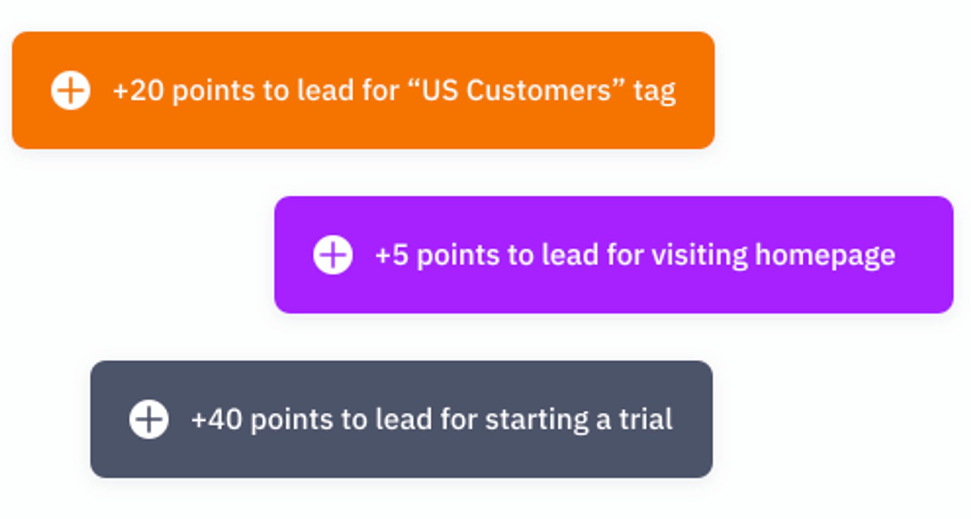Lege weitere Kriterien fest, die du erfassen möchtest, und erstelle ein System für die Vergabe von Punkten. Jedes Mal, wenn ein potenzieller Kunde mit dem Unternehmen telefonisch Kontakt aufnimmt, erhält dieser Kunde beispielsweise X Punkte. In diesem Stadium legst du lediglich die Punktzahl für verschiedene Aktivitäten und Merkmale fest.
