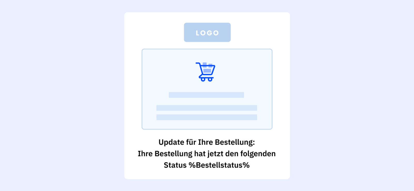 - Bestellstatus: Sende deinen Kunden eine sofortige Rückmeldung, wenn sich ihr Bestellstatus ändert. Mit unseren leistungsstarken Marketingautomationsfunktionen kannst du diesen Prozess schnell und einfach automatisieren. Dieser proaktive Ansatz stellt sicher, dass deine Kunden informiert bleiben, fördert das Engagement, um Beziehungen zu stärken, und ebnet den Weg für treue, wiederkehrende Kunden.