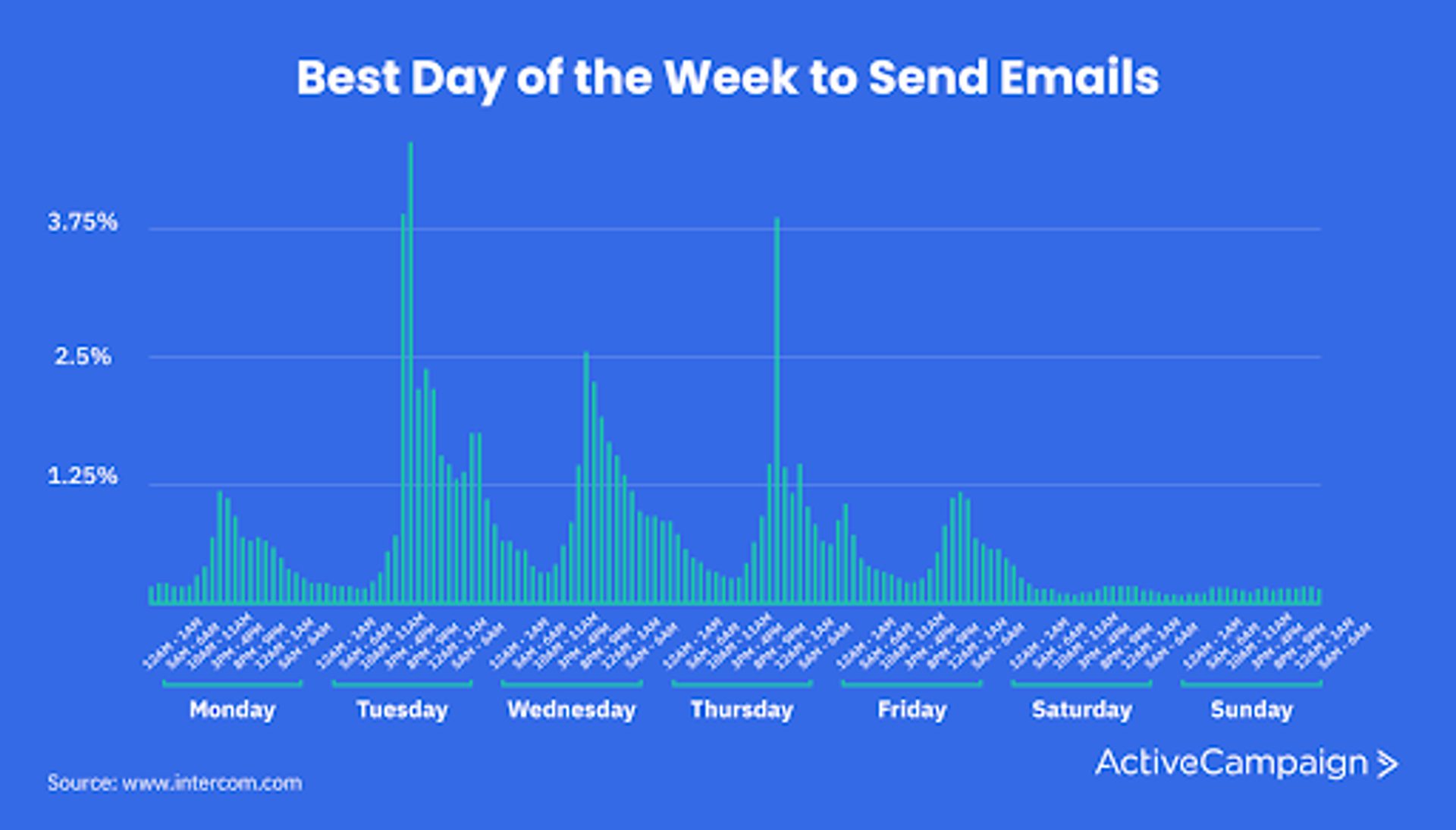 Mittlerweile gibt es viele Studien, welche den besten Zeitpunkt für das Versenden eines Newsletters ermittelt haben. (Quelle: ActiveCampaign)