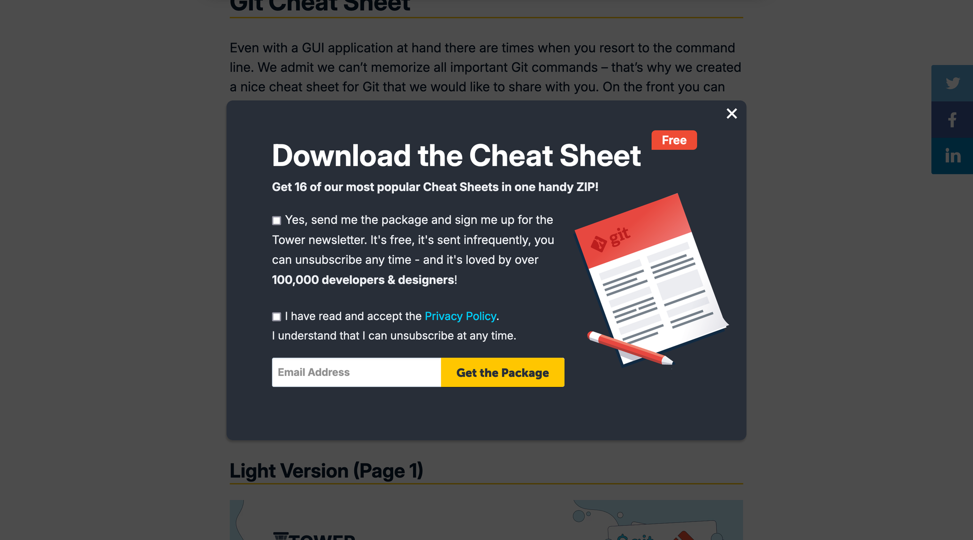 Um die E-Mail-Liste zu erweitern und potenzielle Kunden zu pflegen, führte Tower mehrere Lead-Magnete ein, wie z. B. Spickzettel und Minikurse, die speziell auf Entwickler zugeschnitten sind. Diese Lead-Magnete waren sehr erfolgreich und brachten über 150 000 Abonnenten ein.