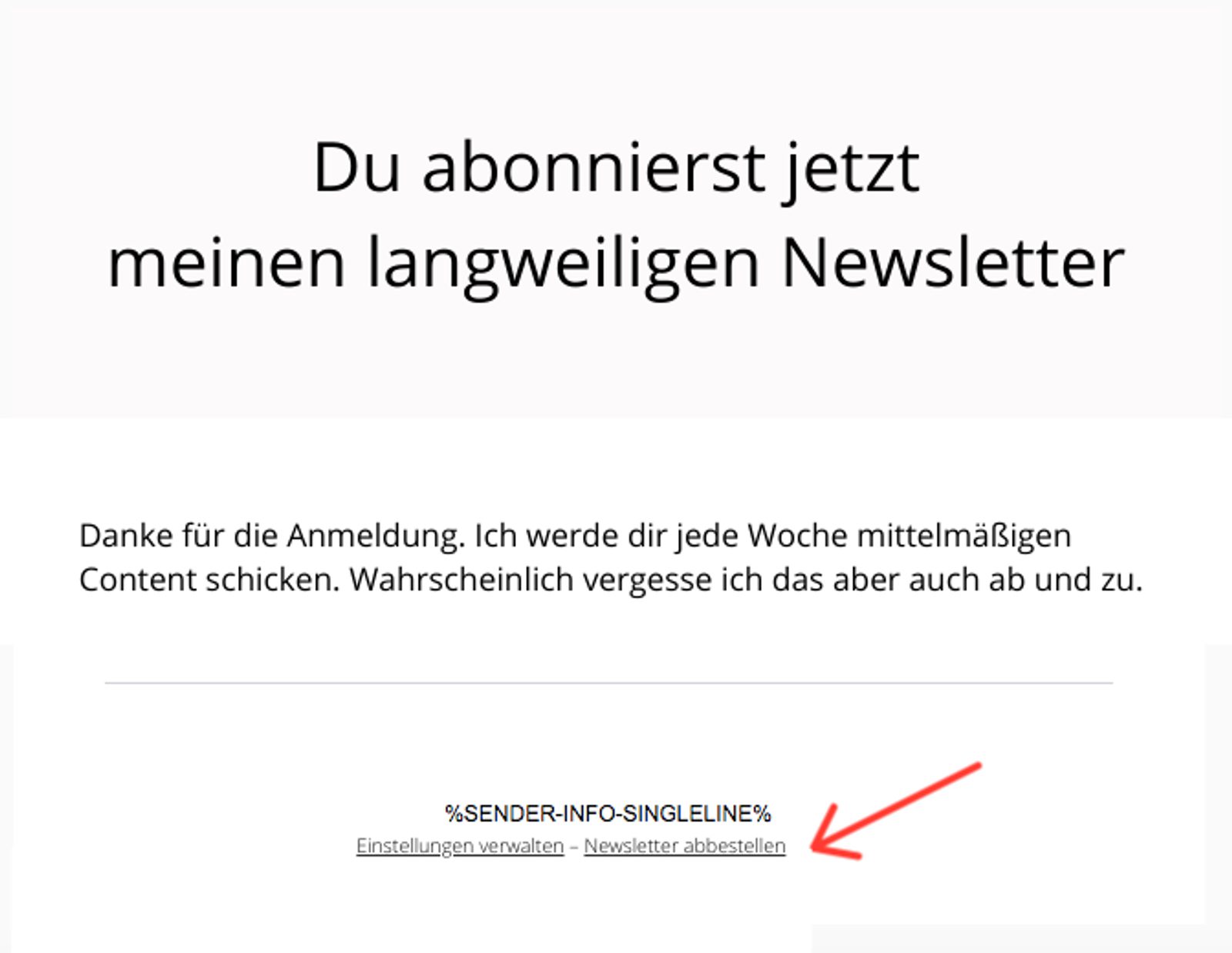 Indem du deinen Abonnenten dazu gratulierst, dass sie den ersten richtigen Schritt gemacht haben, sendest du eine subtile Botschaft, die sie dazu ermutigt, weitere gute Entscheidungen zu treffen.