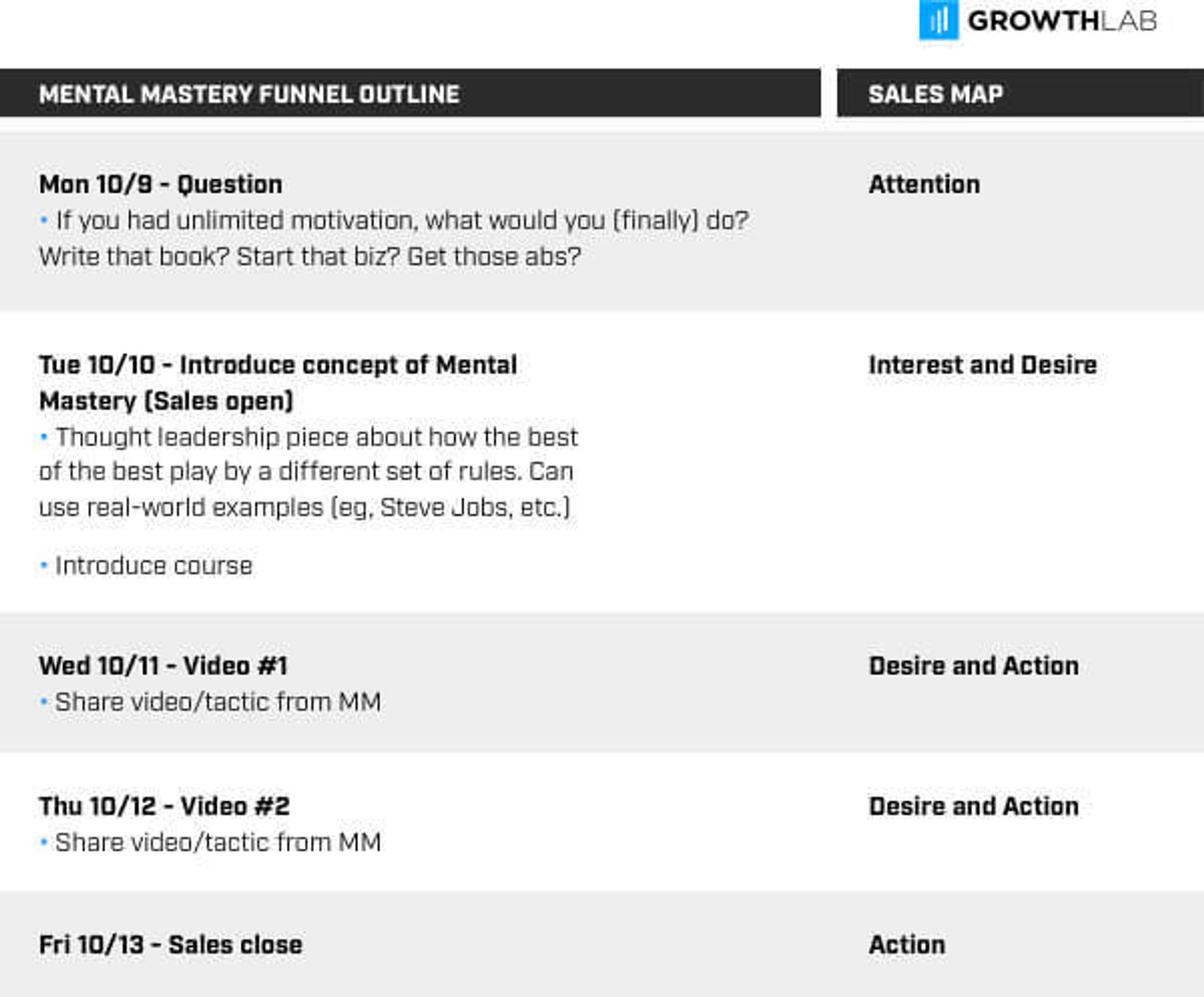 Ryan Johnson ist Head-Copywriter bei GrowthLab und Meister im Entwerfen von E-Mail-Funnels und Launches. Hier zeigt er uns seinen 5-Tage-Funnel für den Kurs „Mental Mastery“, der genau den Phasen des AIDA-Modells entspricht: