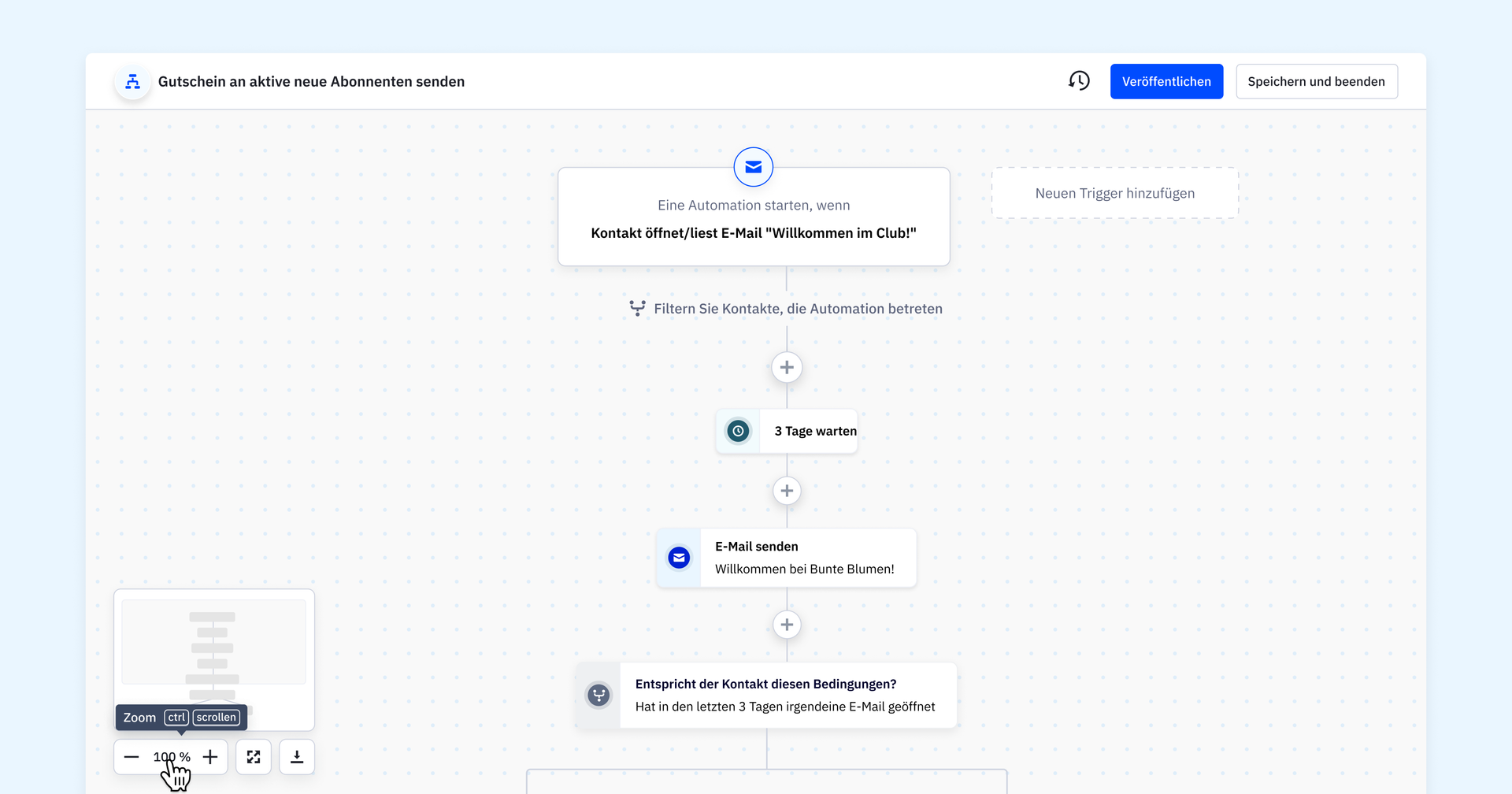 - Automation-Minikarte: Navigiere mit der neuen Minikartenfunktion ganz einfach durch deine Automationen. Erhalte schnell einen Überblick über deinen gesamten Workflow und springe sofort zu bestimmten Abschnitten.